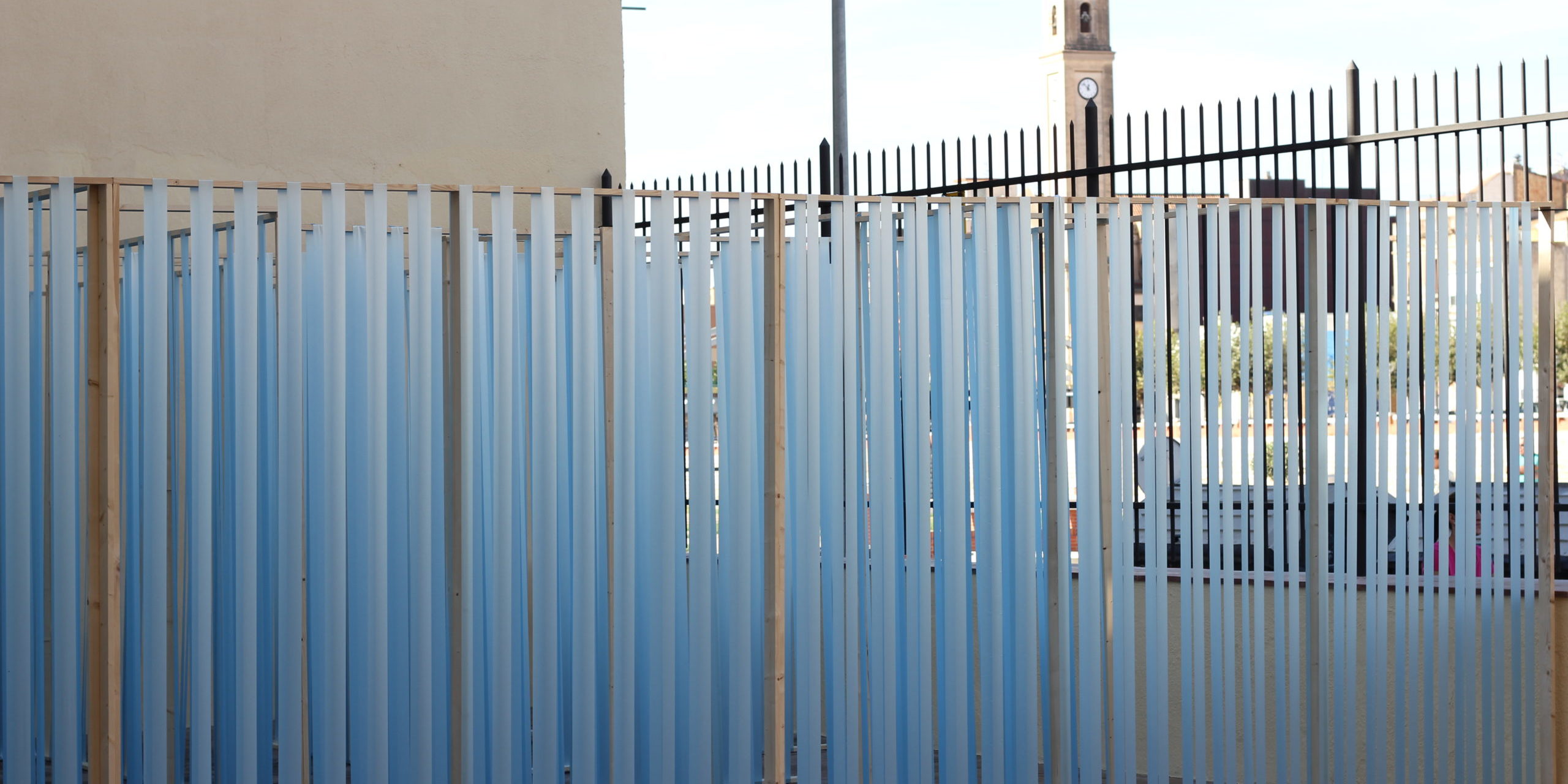 The labyrinth reflects on the time and the visitor actively participates in such reflection, being part of the installation itself. Sky Blue Labyrinth symbolises the transforming process of human experience where the traveller is constantly faced with their own creation.
