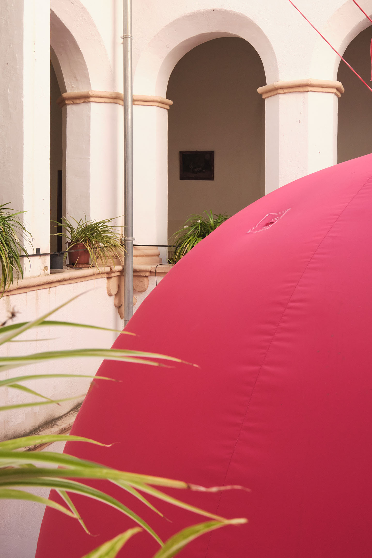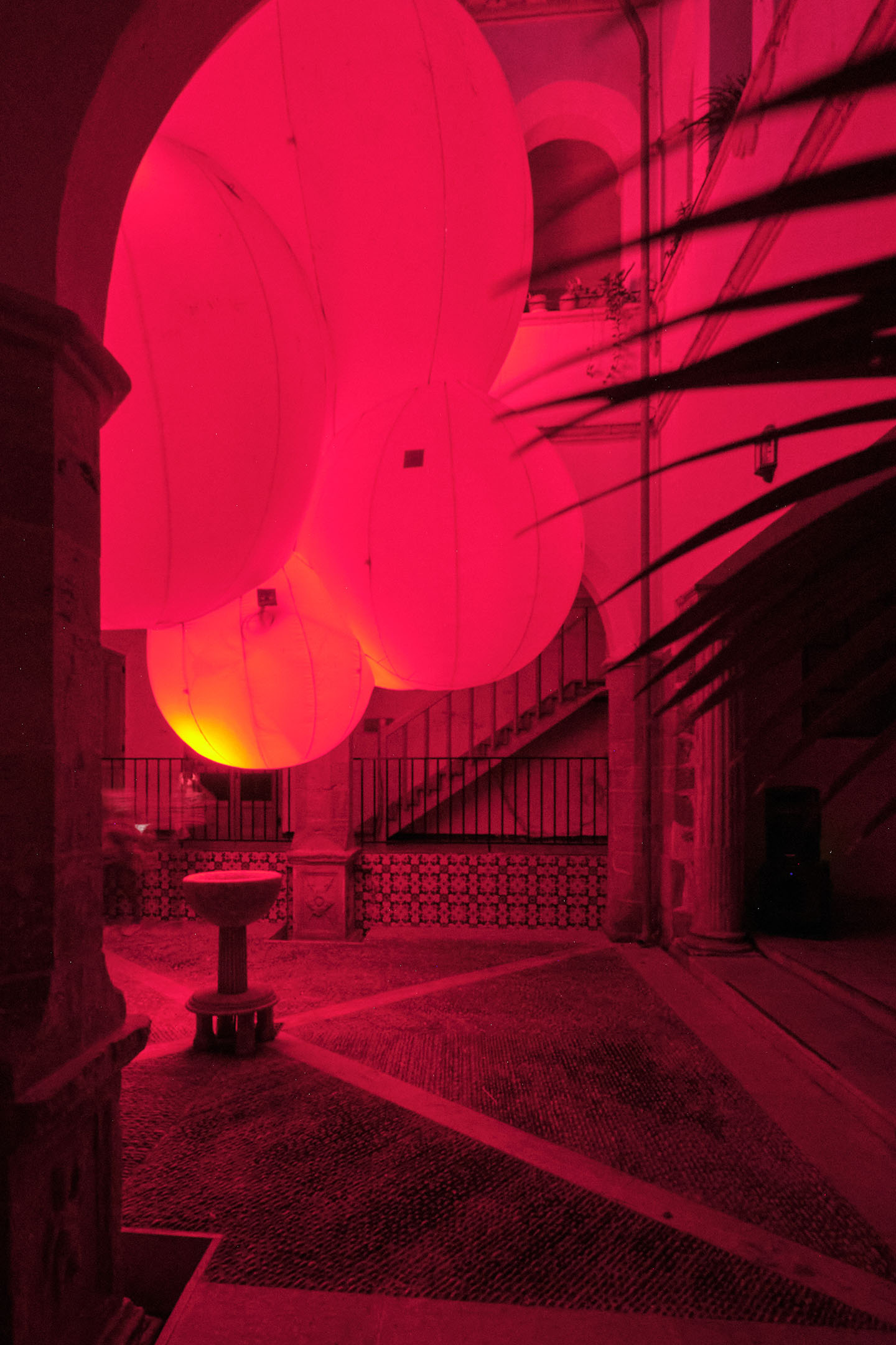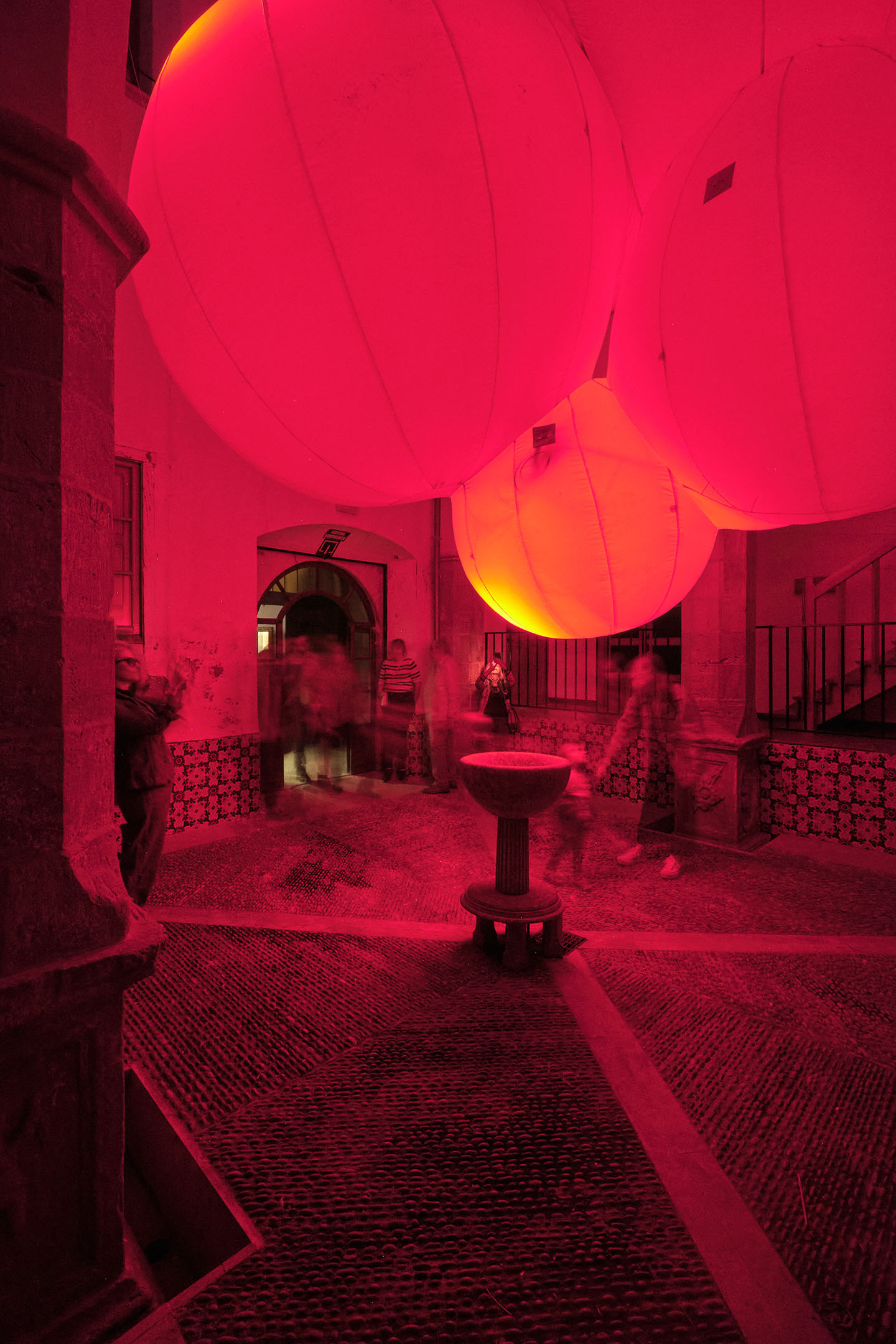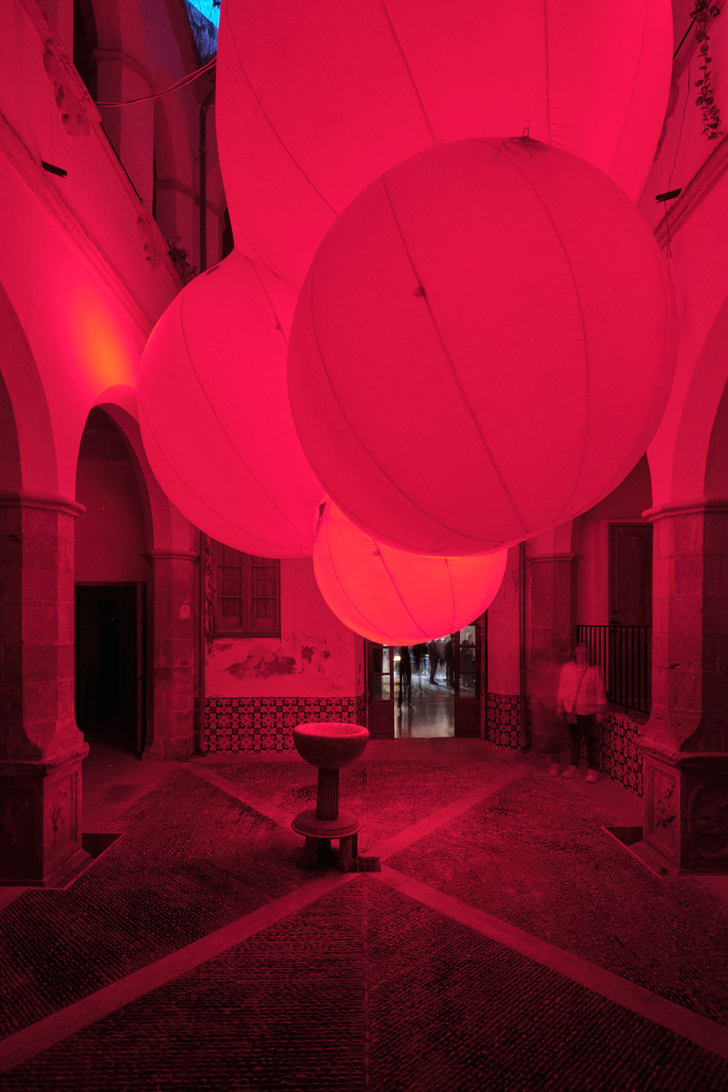 Outside, on Montcada Street, a flashing red light with the sound of a heartbeat, which comes from inside the building, attracts the attention of pedestrians, piquing the curiosity that will lead them to discover this space.