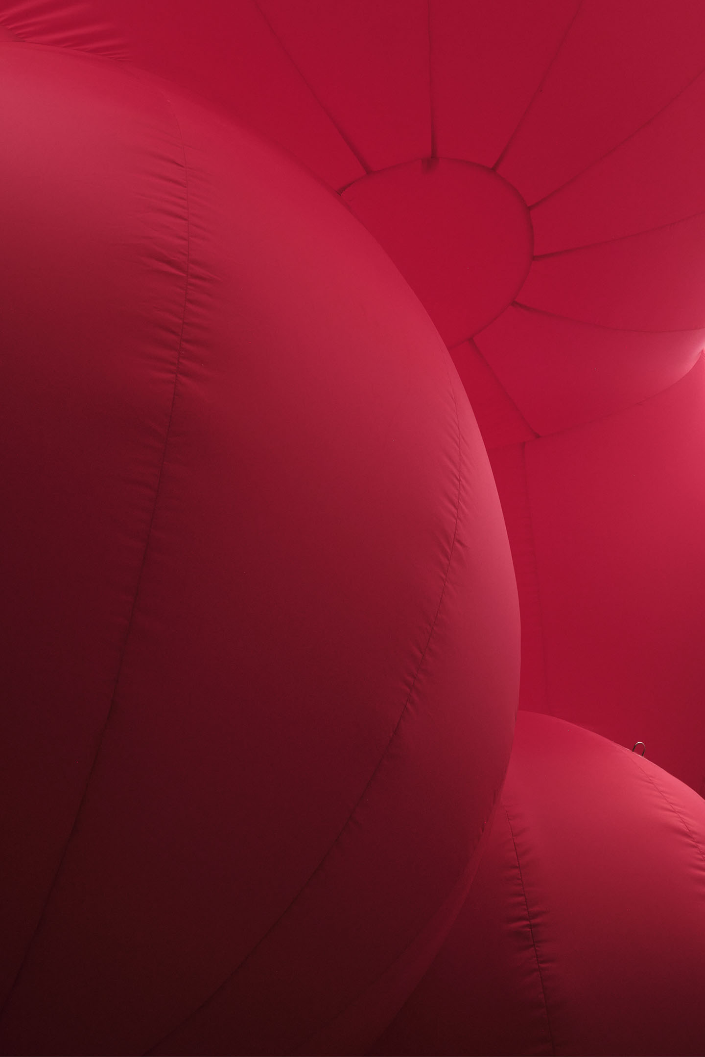 The functioning of the human heart is sketched out within the courtyard. Four different-sized chiral spheres light up, reproducing the flow of blood through their interior. First the atria and then the ventricles, a few seconds apart.