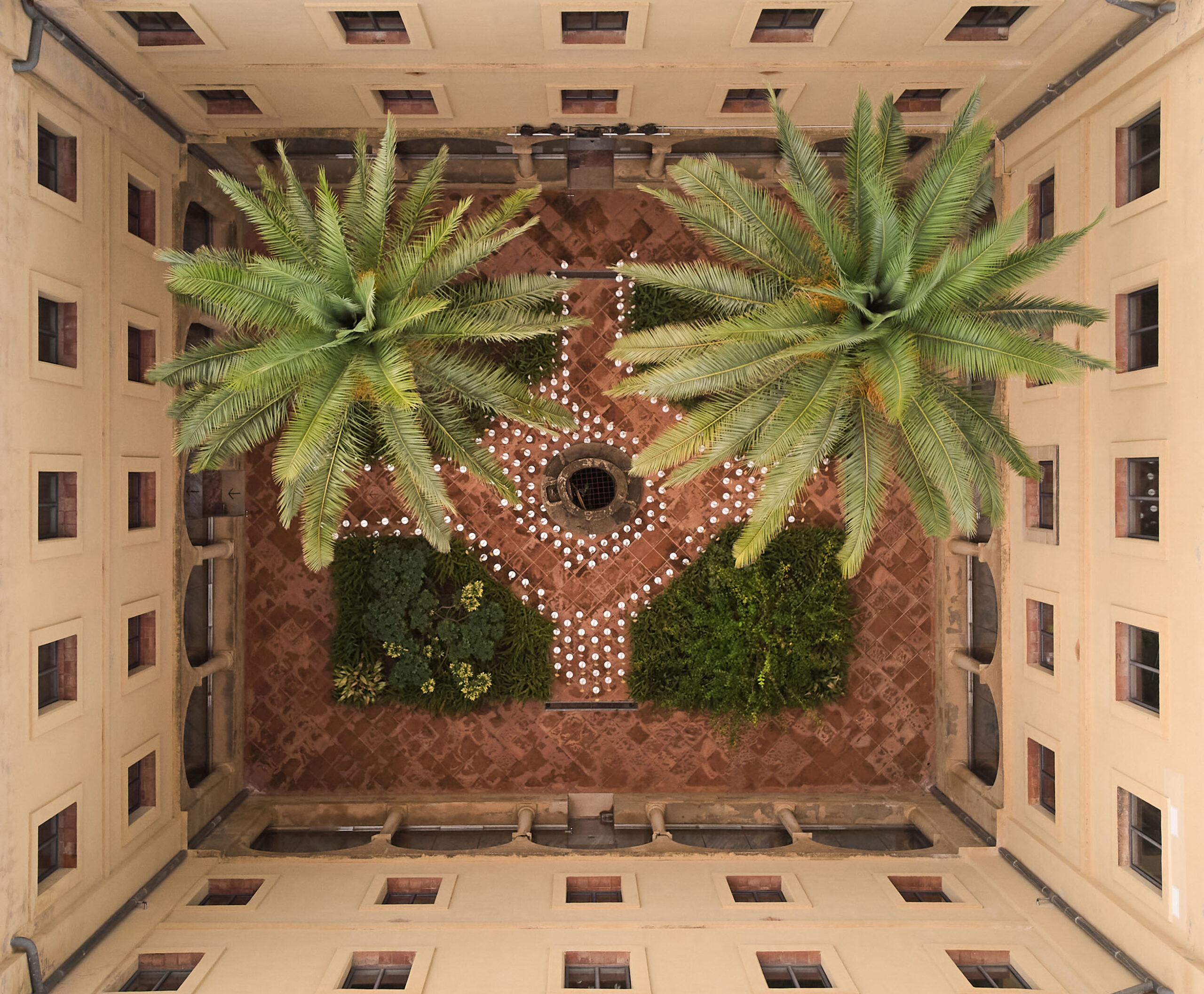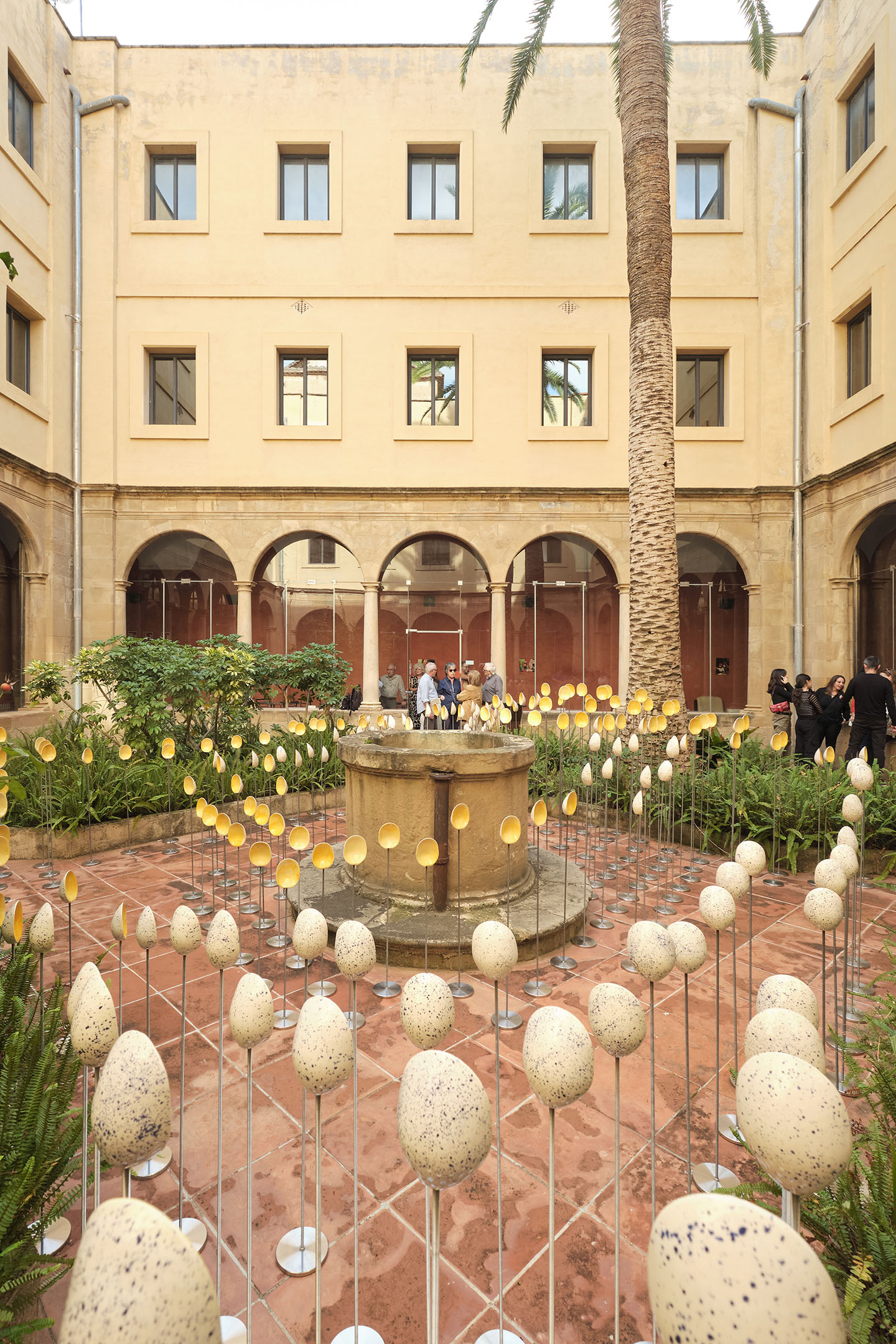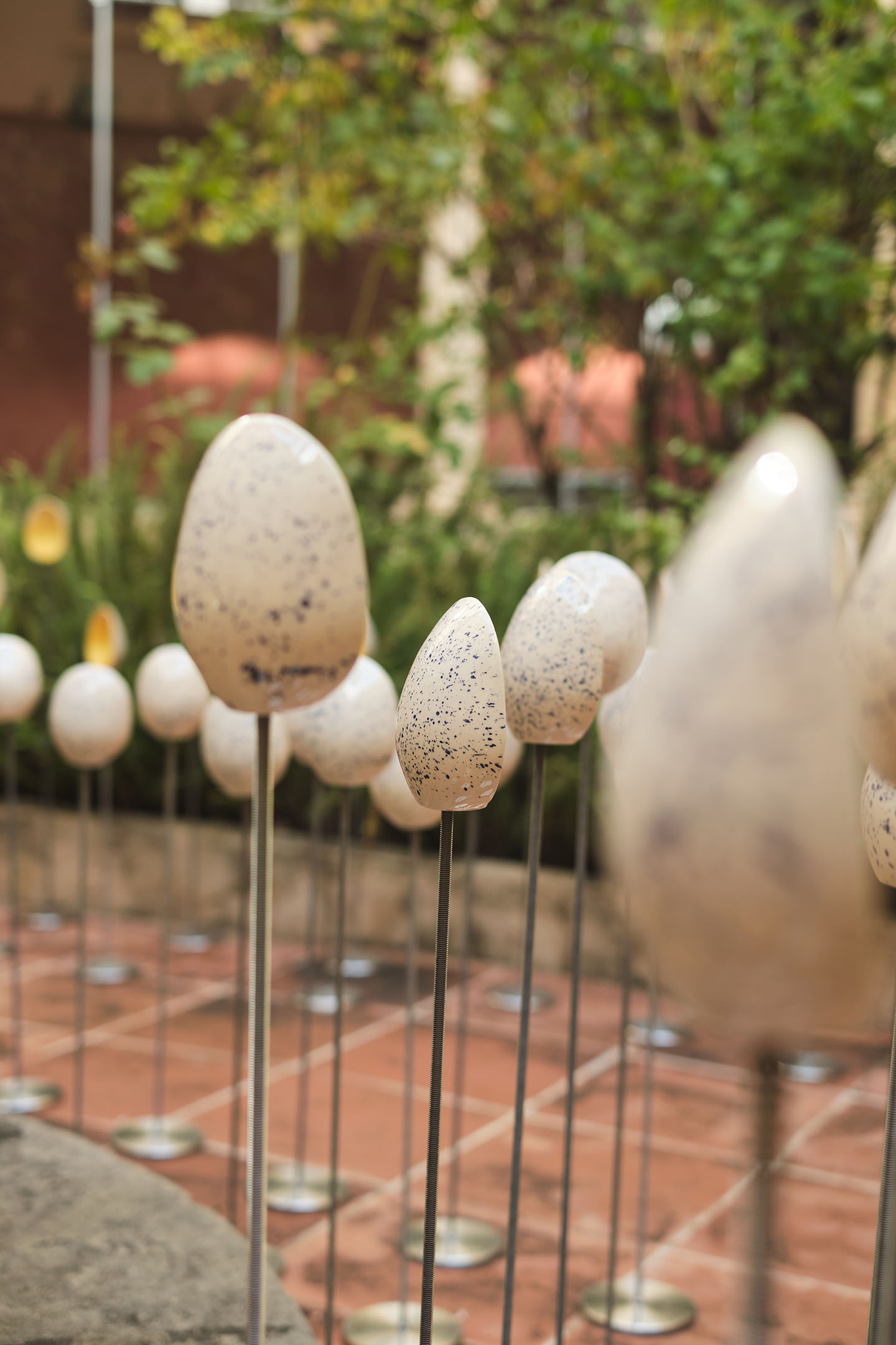 Innovation and craftsmanship go hand in hand in this installation that was created using parametric design and digital modeling techniques, then built by hand in the Seville workshop of the artist Raquel Eidem, through a delicate process using traditional techniques from the ancient Andalusian art of ceramics. The firing and enameling give the pieces their own identity that encourages you to observe them closely and appreciate the importance of art and craftsmanship.