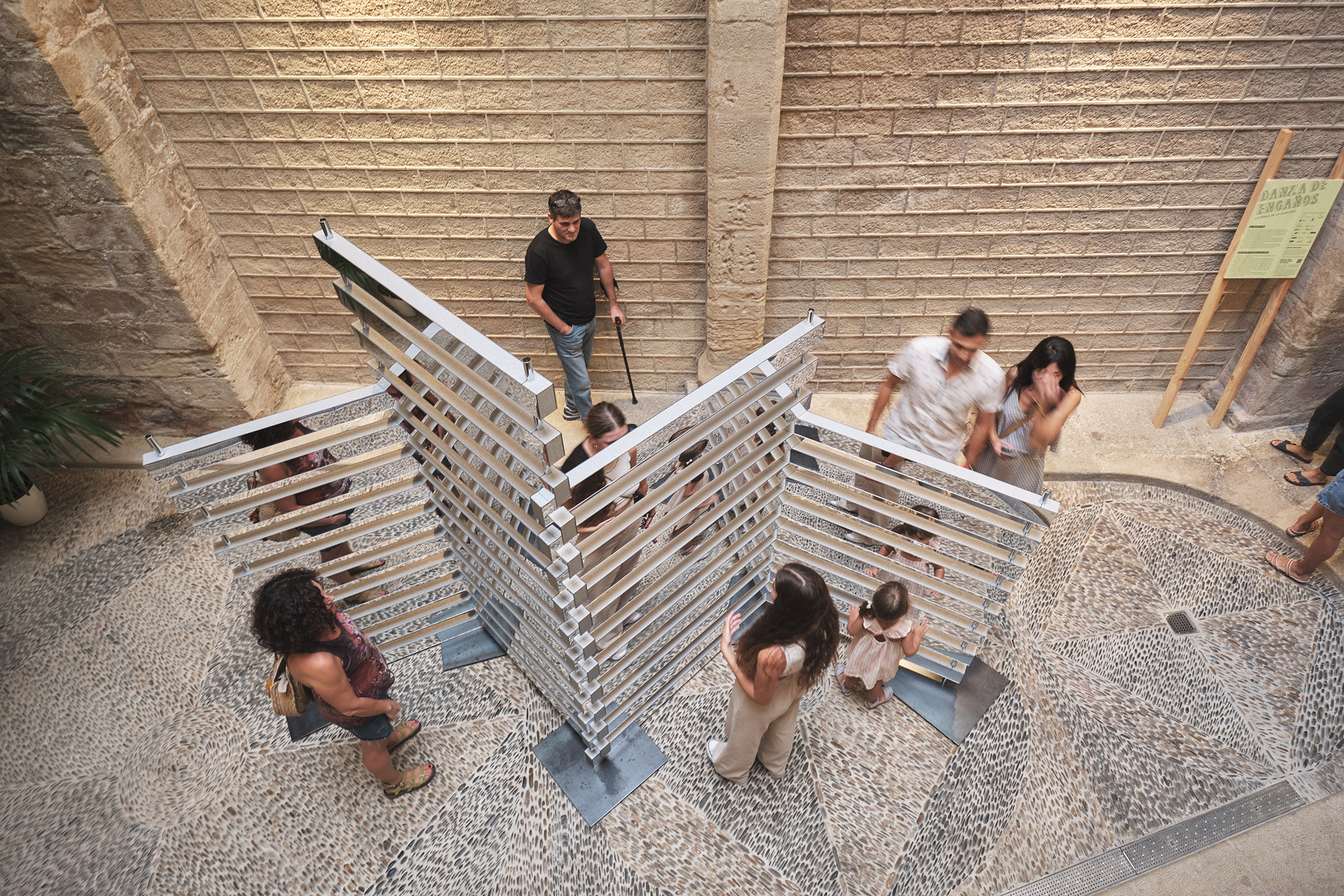 This distinctive design, this “Dance of Deceptions: the Magic of Duality”, enables two individuals to simultaneously look at each other and in the mirror, merging into a single identity. This installation embodies the core essence of the architects’ research, where the eagerness to create meaningful projects reigns.