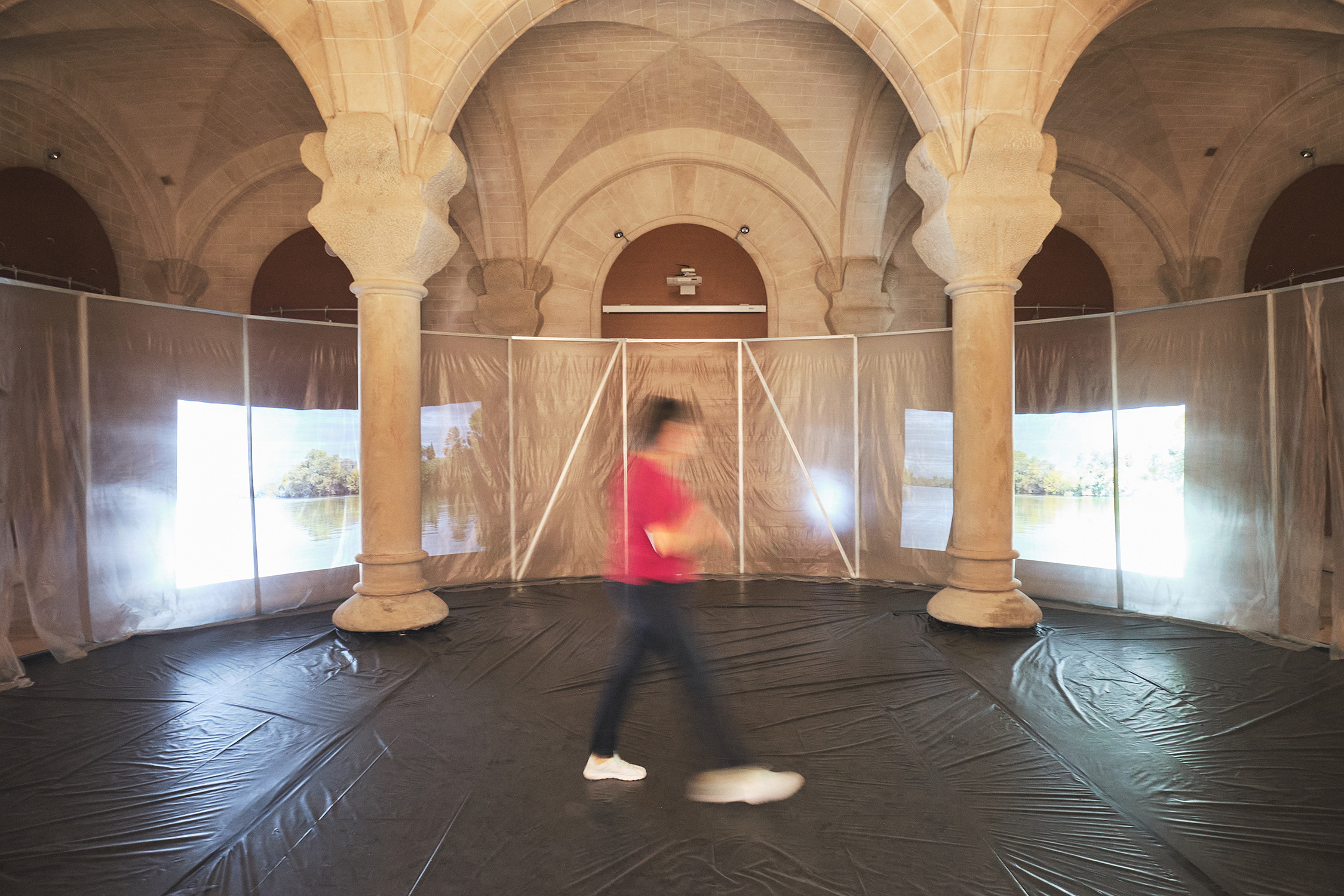 If we recognise that limits are the generators of space, acting on them allows us to create a new space, or at least the illusion of one. In this work, a new limit is established that blurs the space, creating the illusion of continuity. The spectator therefore finds themselves in the centre of an impossible landscape, un paisaje imposible.