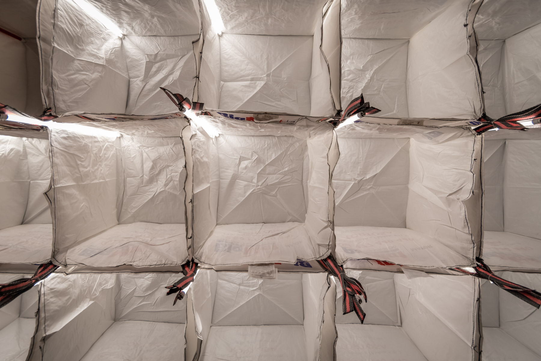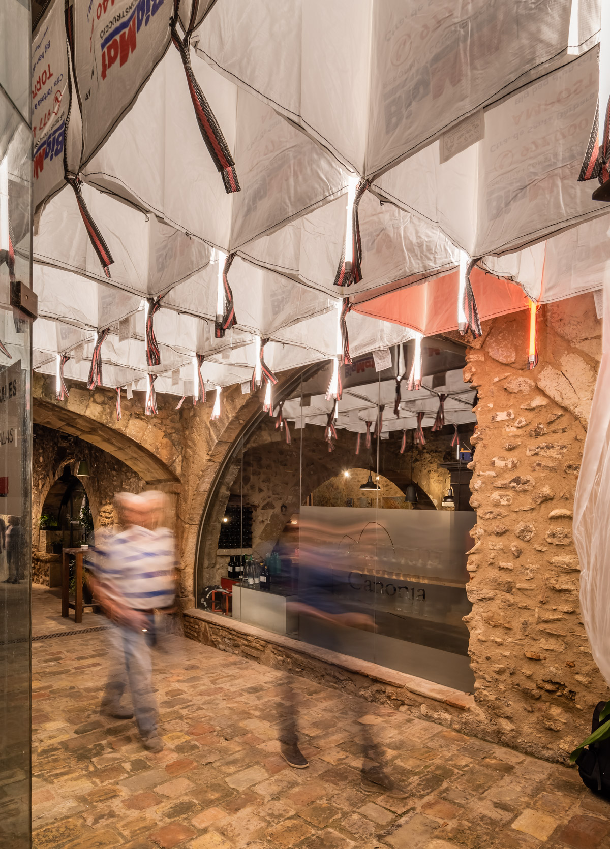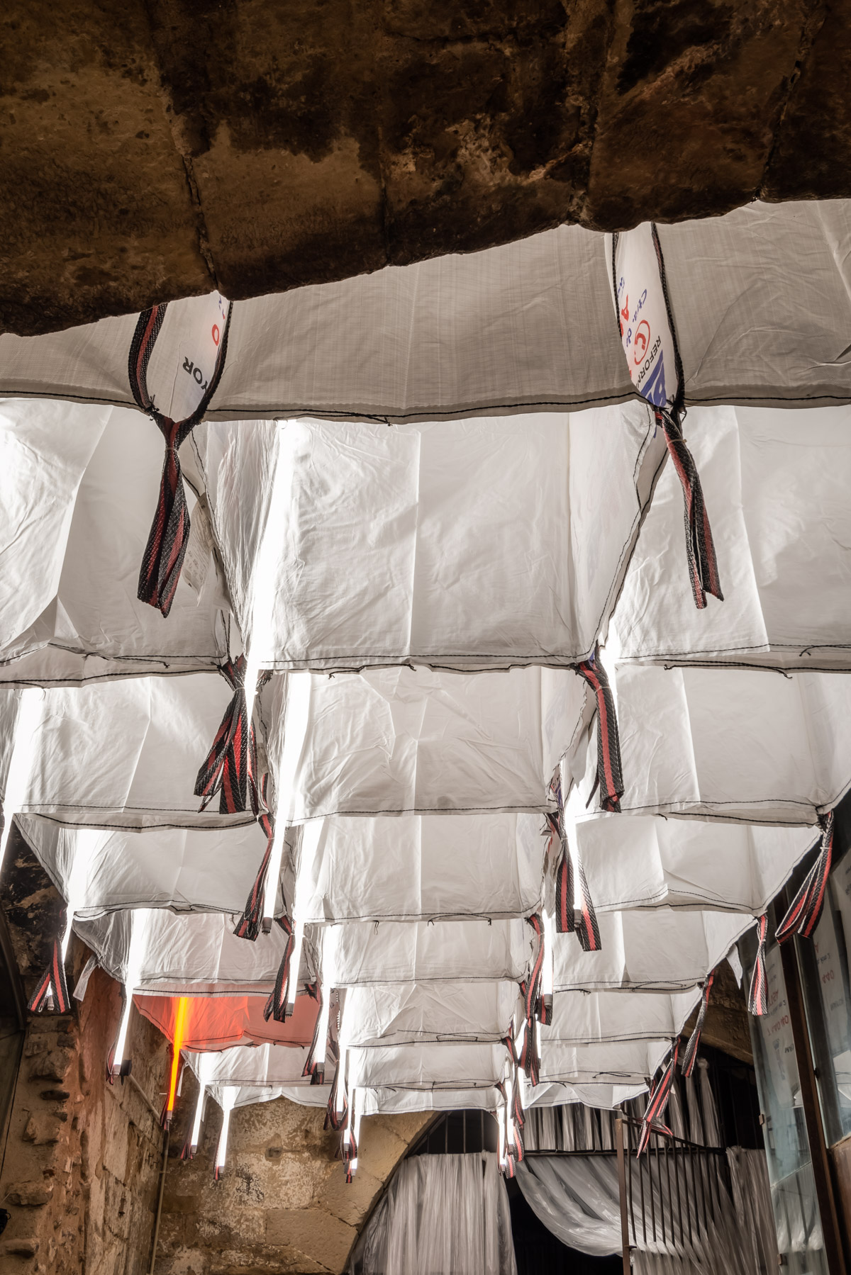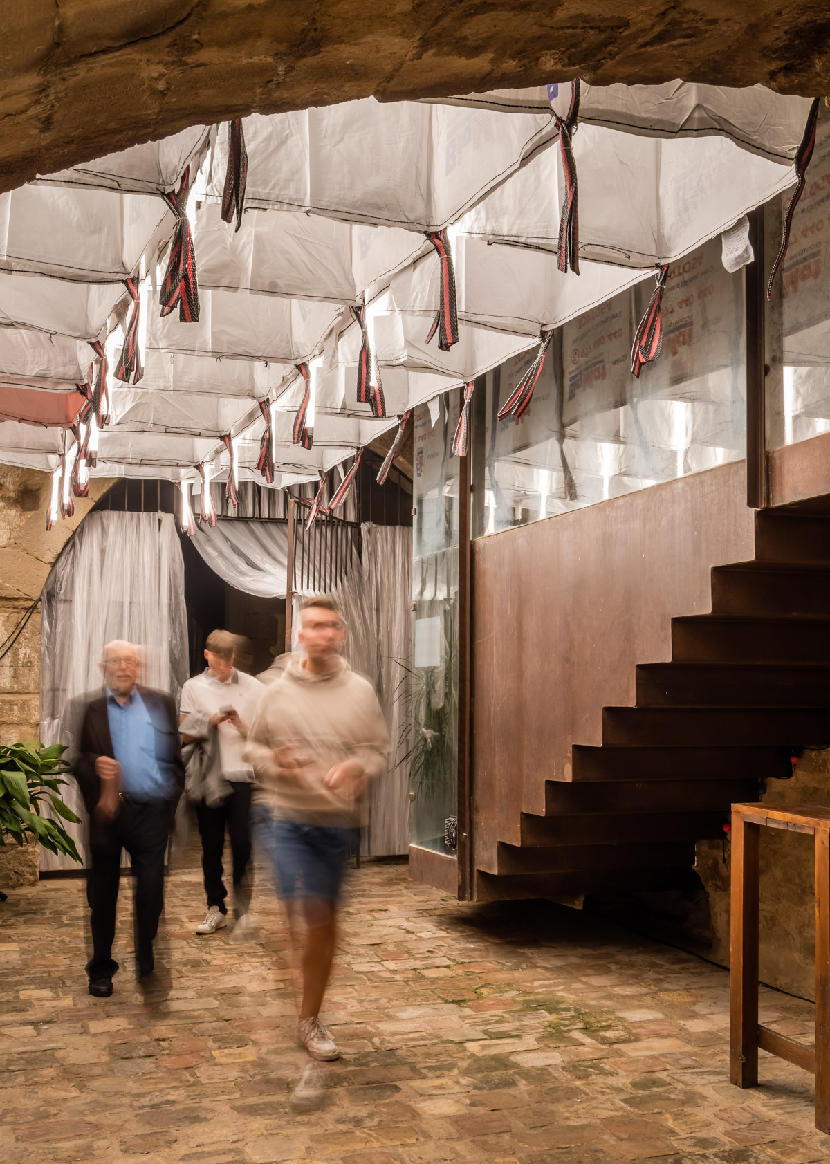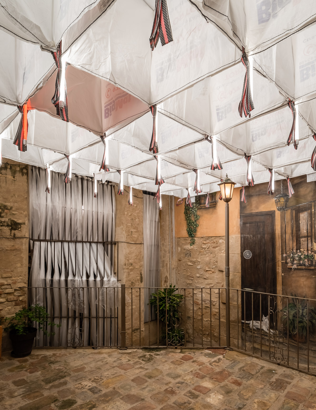 This is an installation that experiments with and explores repetition, where imperfect elements disrupt visual harmony. The intensity of these imperfections surprises the viewer, creating a contrast between the predictable and the unexpected, much like the unique and spontaneous flavor of food cooked on the barbecue. Ultimately, this intervention transforms the space into an artistic experience that leaves no one indifferent.