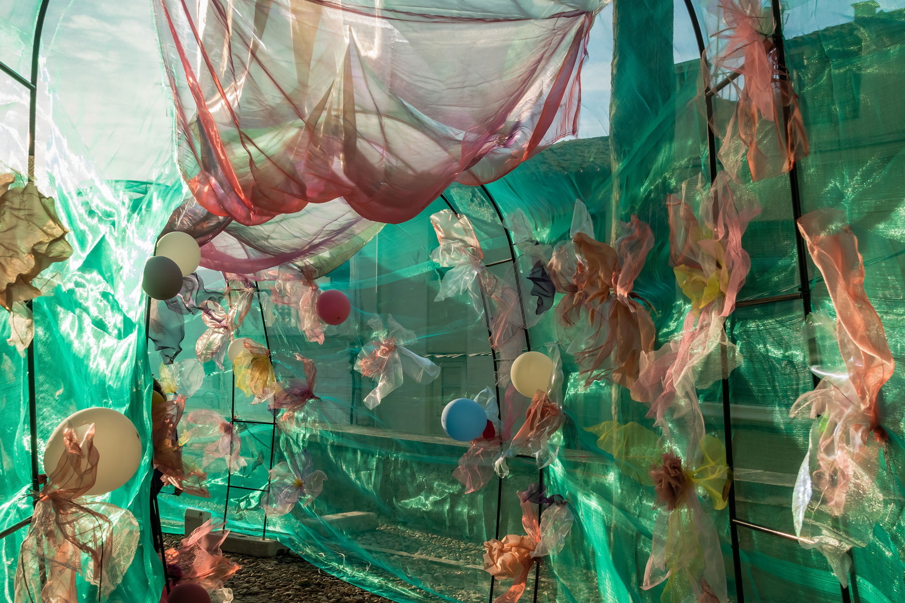 This installation is a reminiscence of the spring explosion and the emotional intensity we experience during the most fertile phase of the solar year, which fades in autumn, the season when the A Cel Obert festival takes place.
