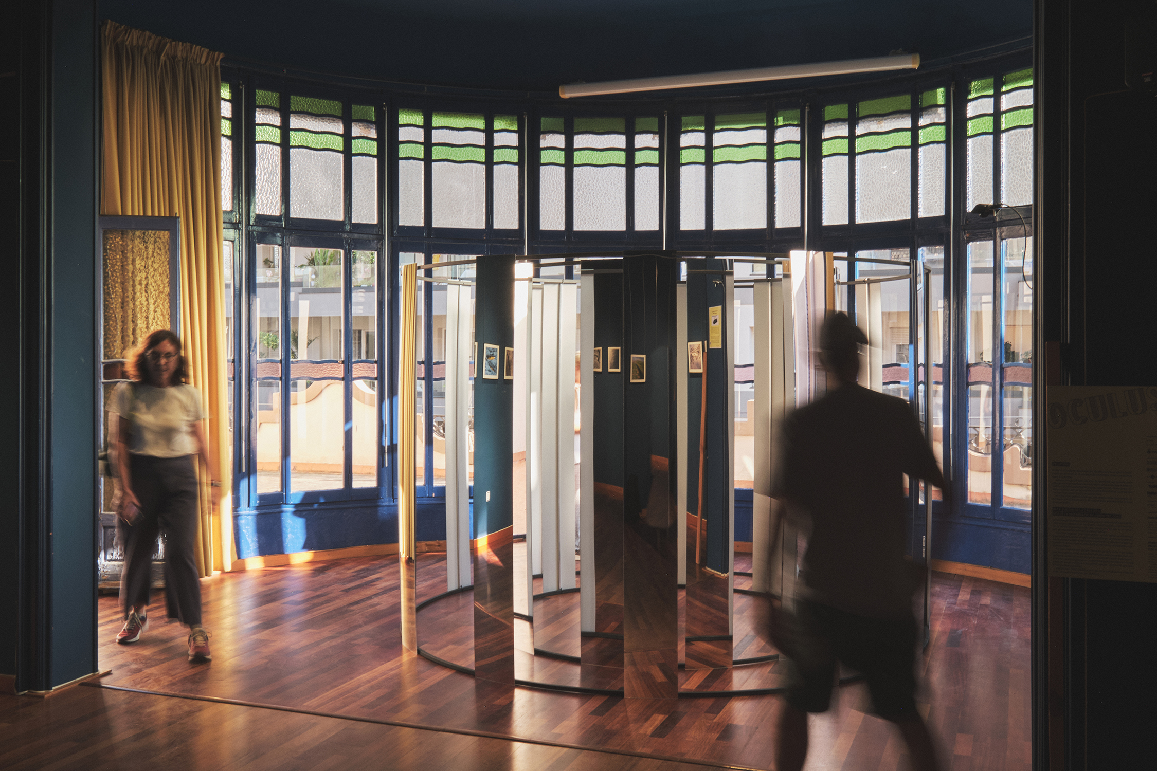 Esta intervención crea una serie de distorsiones que generan nuevas ópticas espaciales, perspectivas imposibles y percepciones que originan reflexiones. Fuera de los estereotipos formales del objeto en sí, Oculus es una modificación óptica; un elemento que rectifica la definición, la nitidez, la perspectiva y, en definitiva, la percepción de aquello que se mira.