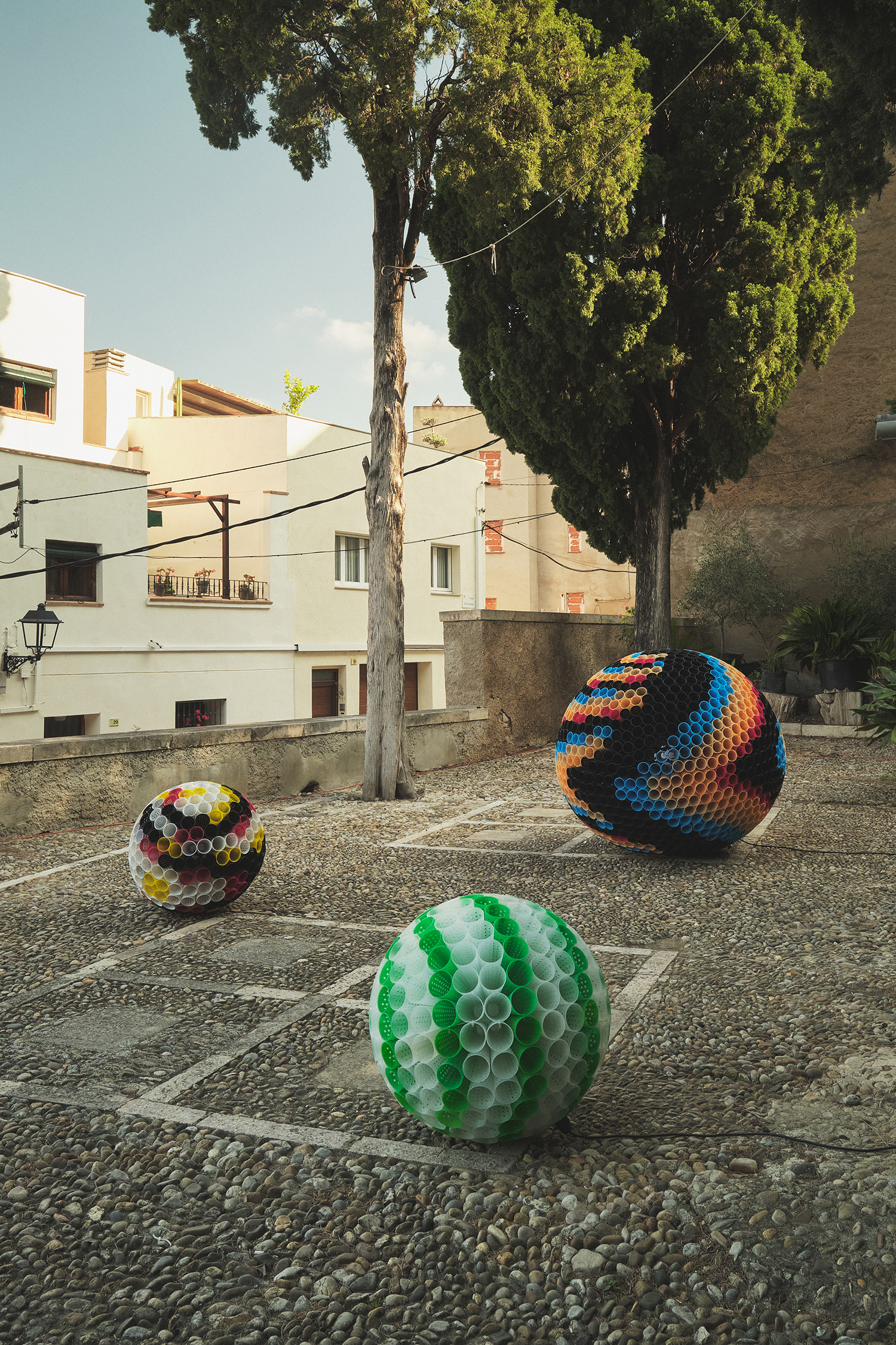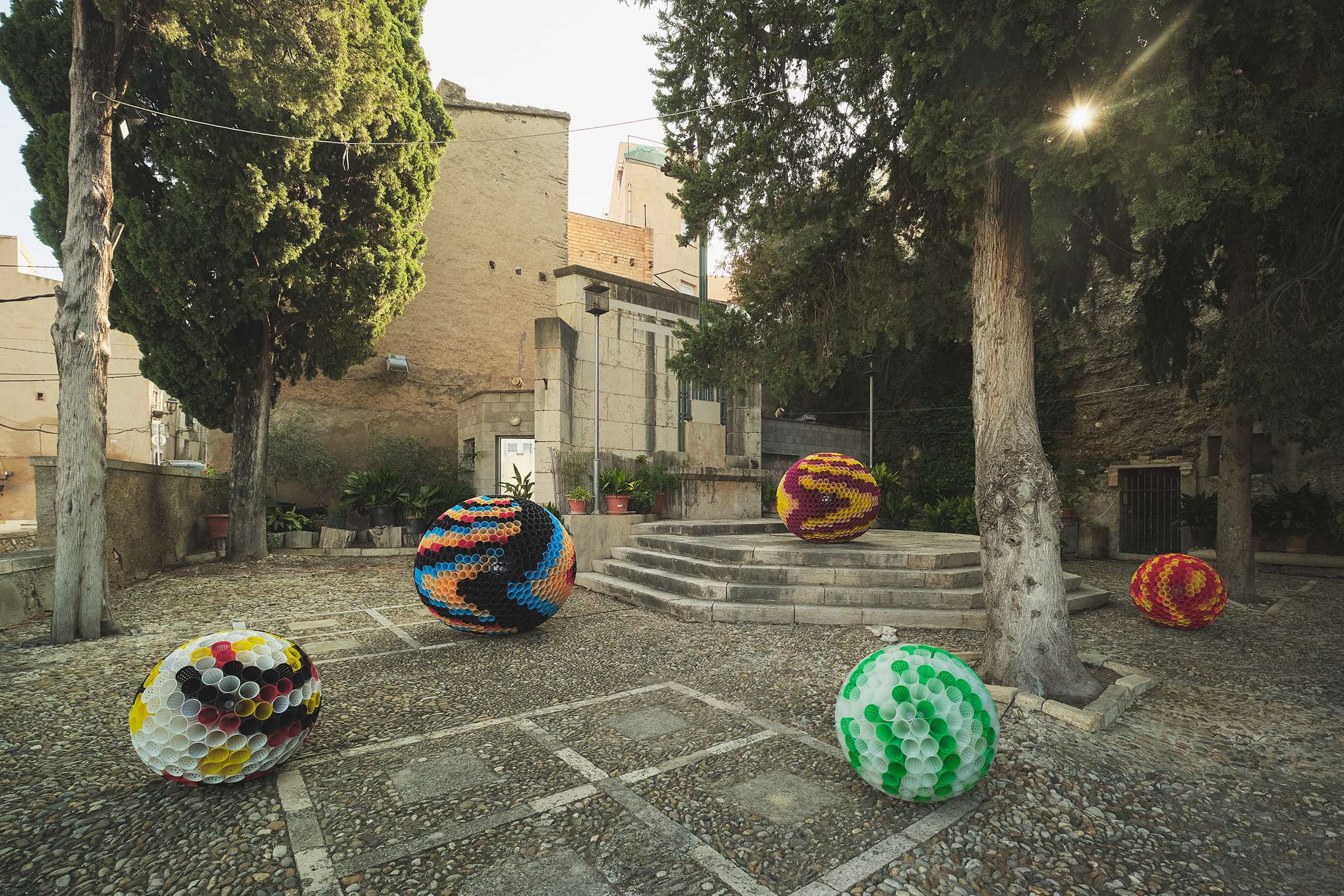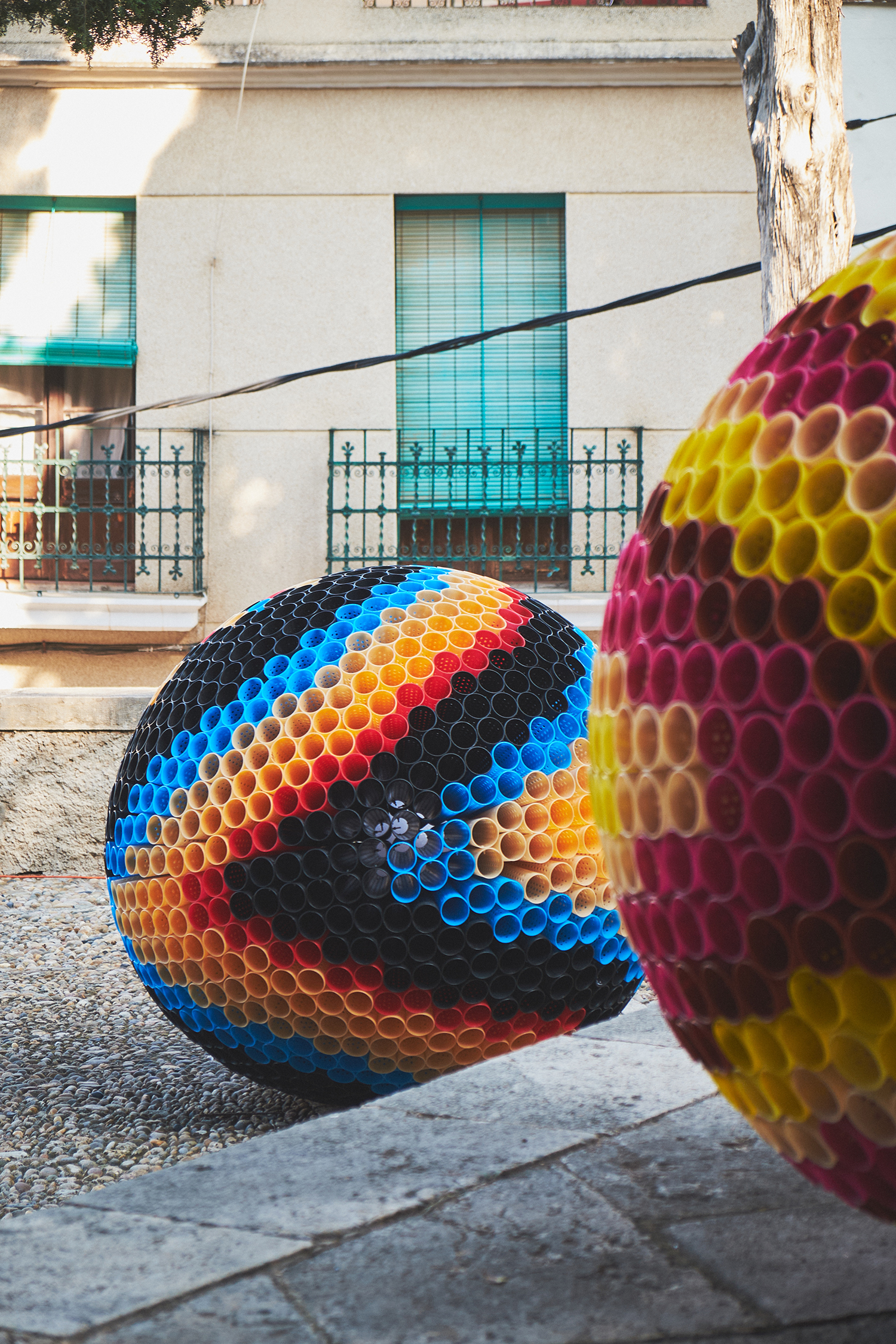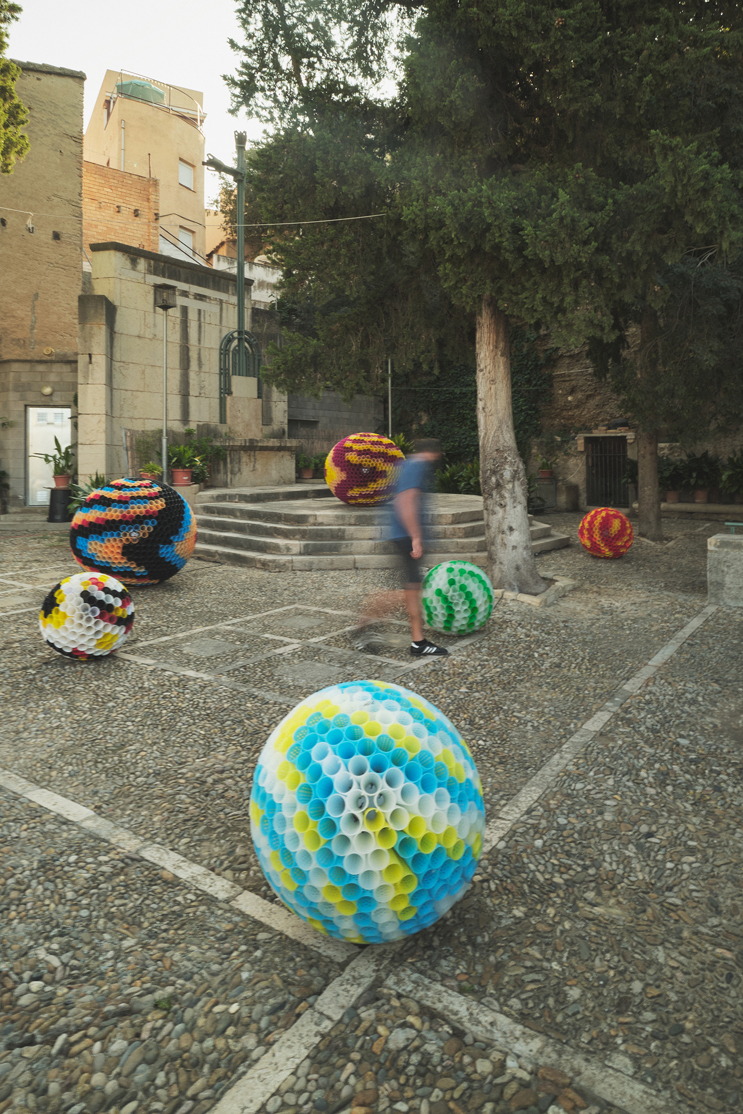 Plastic Marbles es una instalación específica del sitio que combina la reutilización de bobinas textiles de plástico con tradiciones populares. Utiliza la bobina como símbolo de la cultura manufacturera local y la transforma en un medio de expresión.