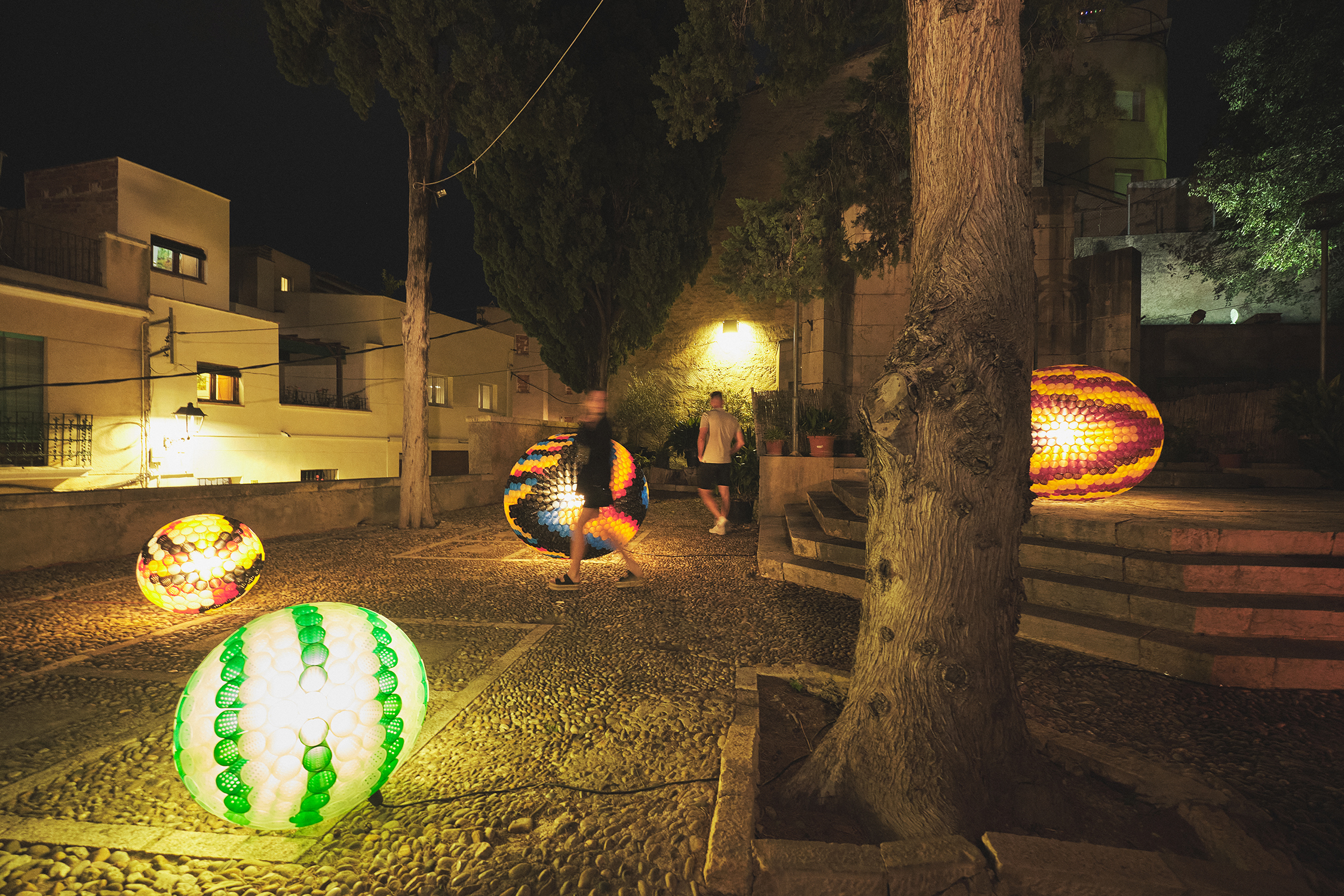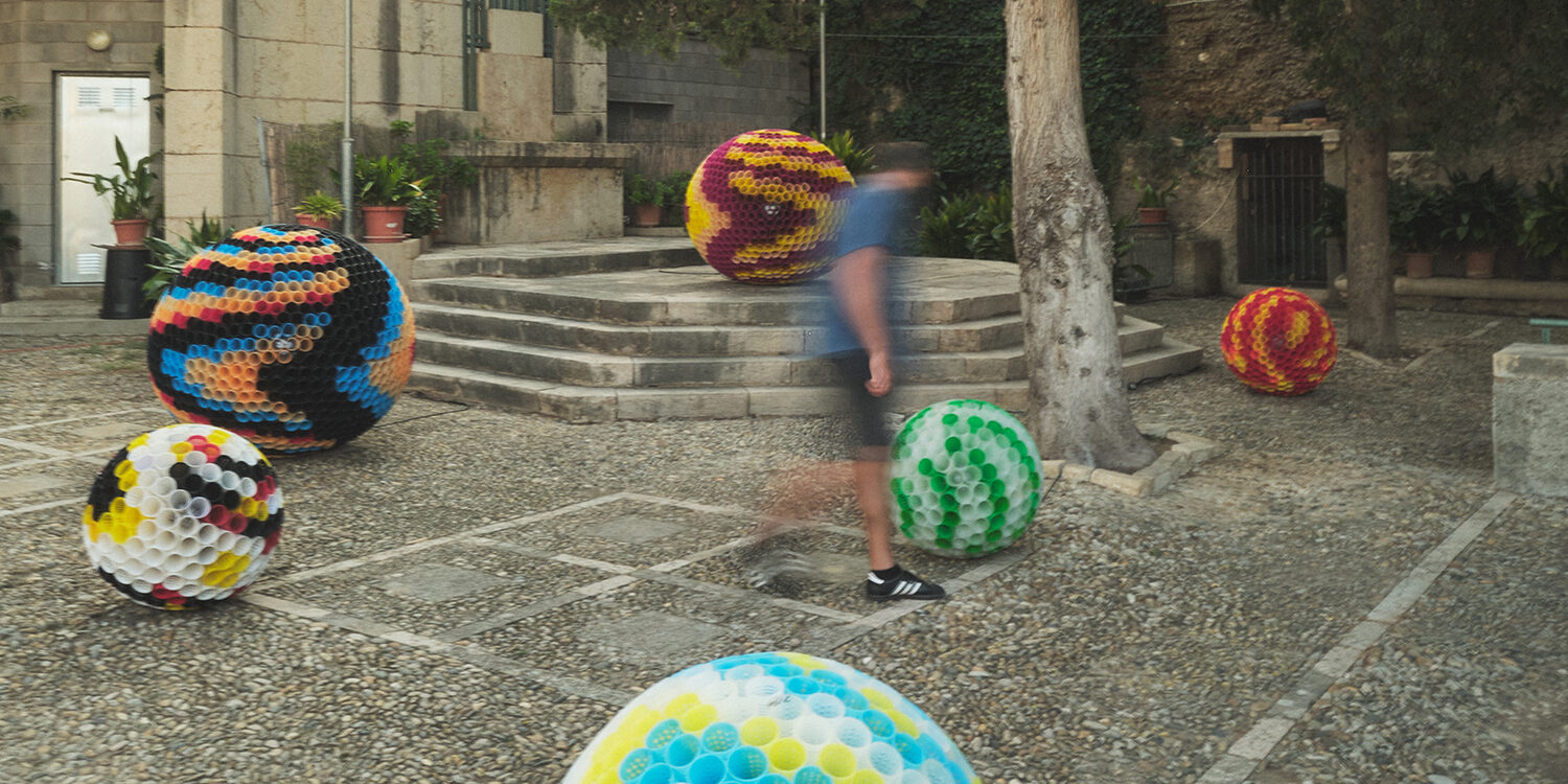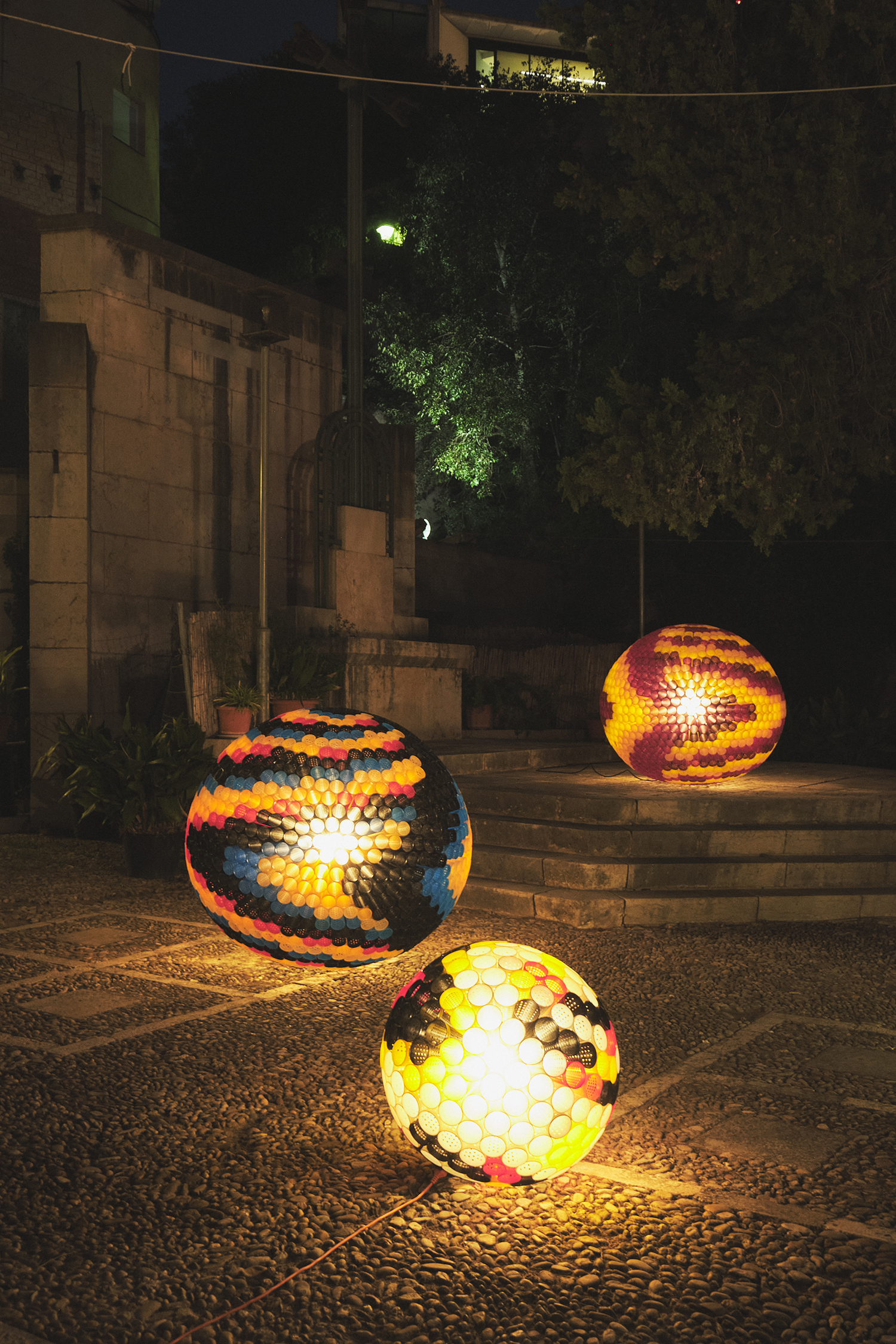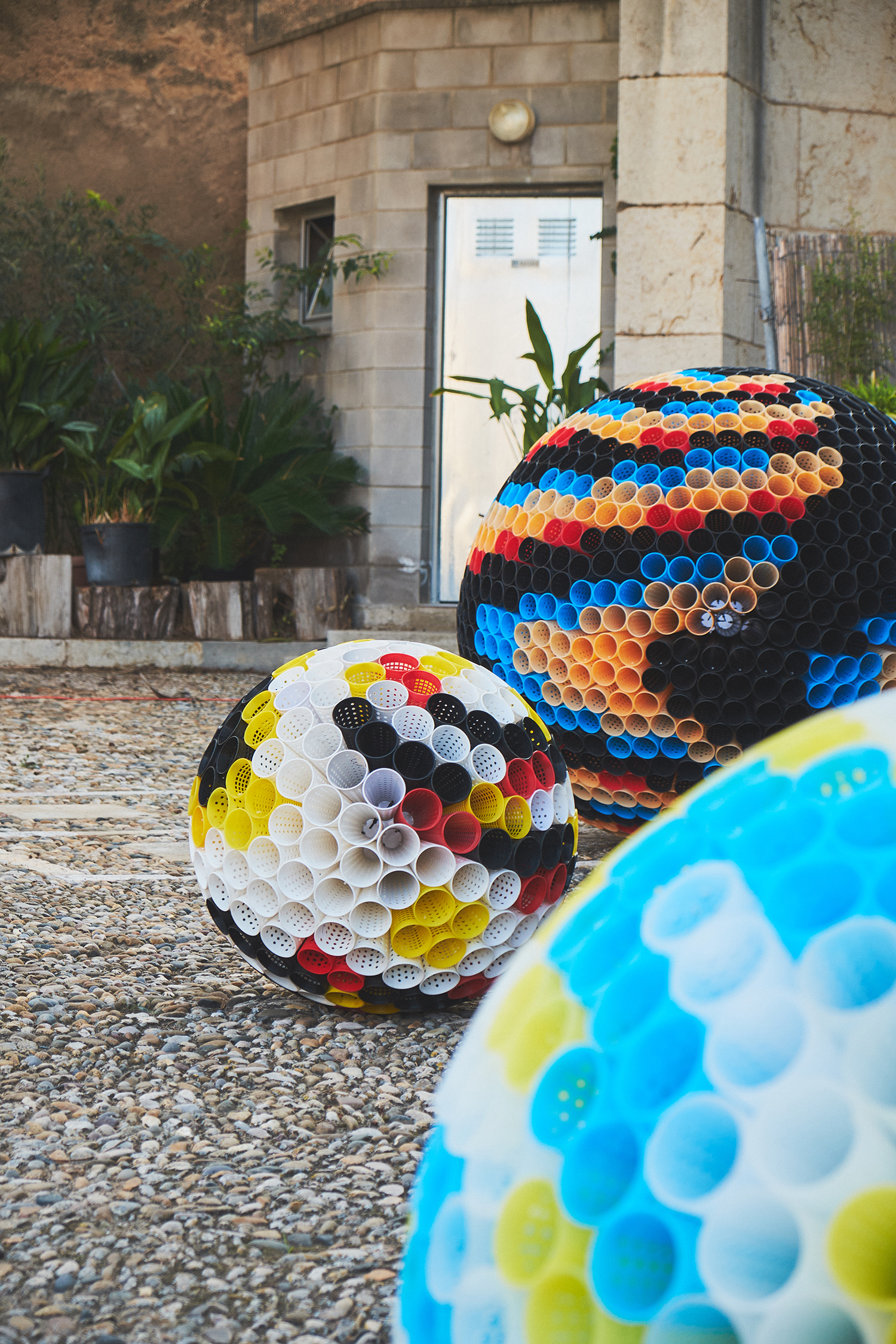 Plastic Marbles es una instalación específica del sitio que combina la reutilización de bobinas textiles de plástico con tradiciones populares. Utiliza la bobina como símbolo de la cultura manufacturera local y la transforma en un medio de expresión.