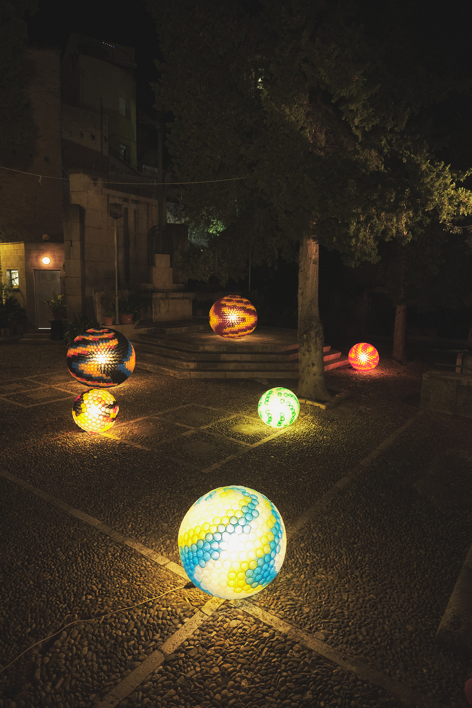 Enmarcada en el contexto de las tradiciones religiosas del Calvari, la instalación se inspira en las exhibiciones de luz y color a gran escala, como los infiorate (festivales de alfombras de flores en Italia) y los luminarie (festivales de luces), con la intención de modificar el espacio y reflejar a la vez las esperanzas y luchas de la comunidad. Inspirada también en el cuidadoso uso del color y la luz en los rosetones de las catedrales góticas, la instalación reutiliza residuos de fábrica para construir grandes canicas con motivos ordenados y caóticos, creando la ilusión de una transformación sin fin a partir de elementos finitos.