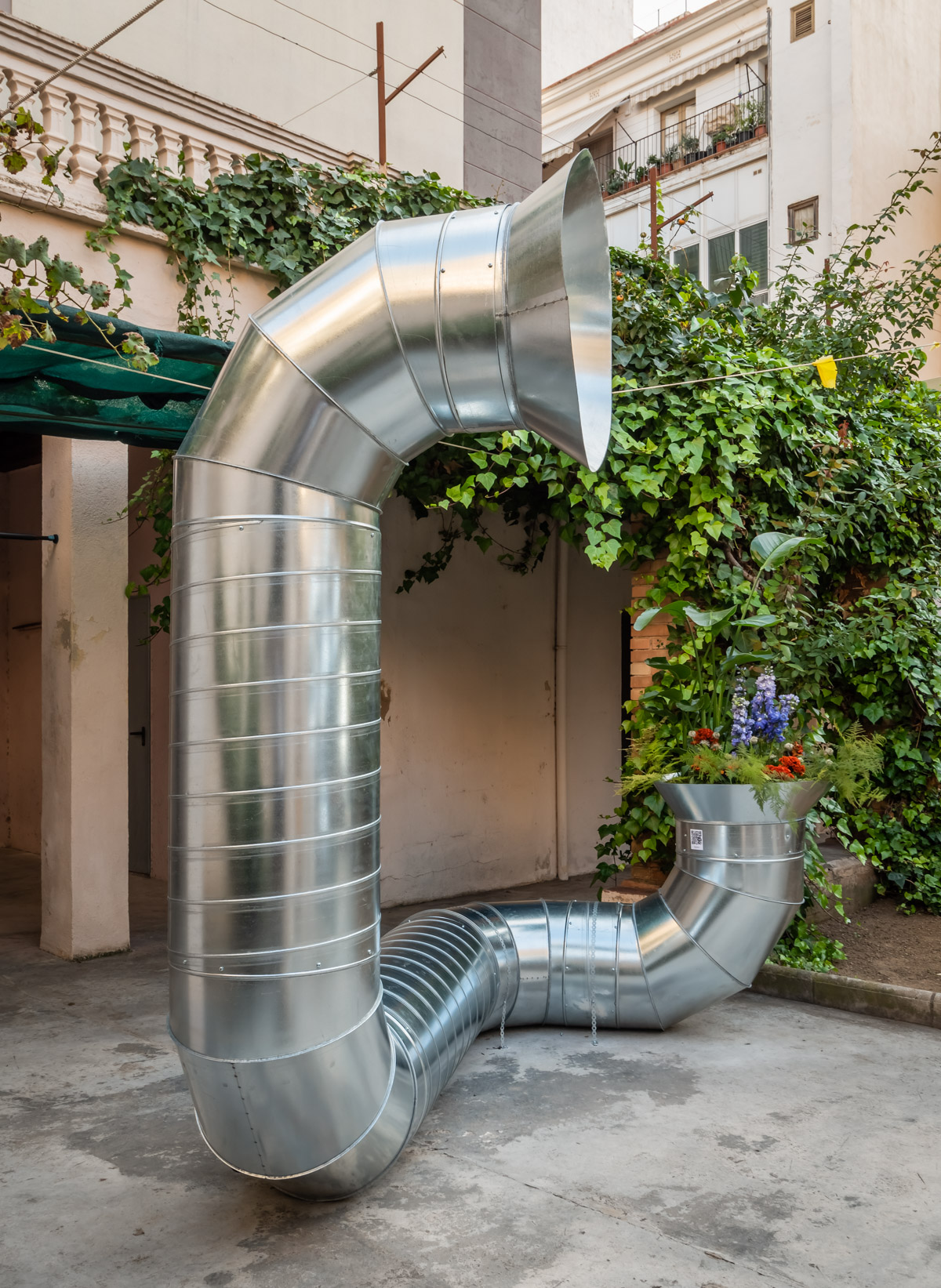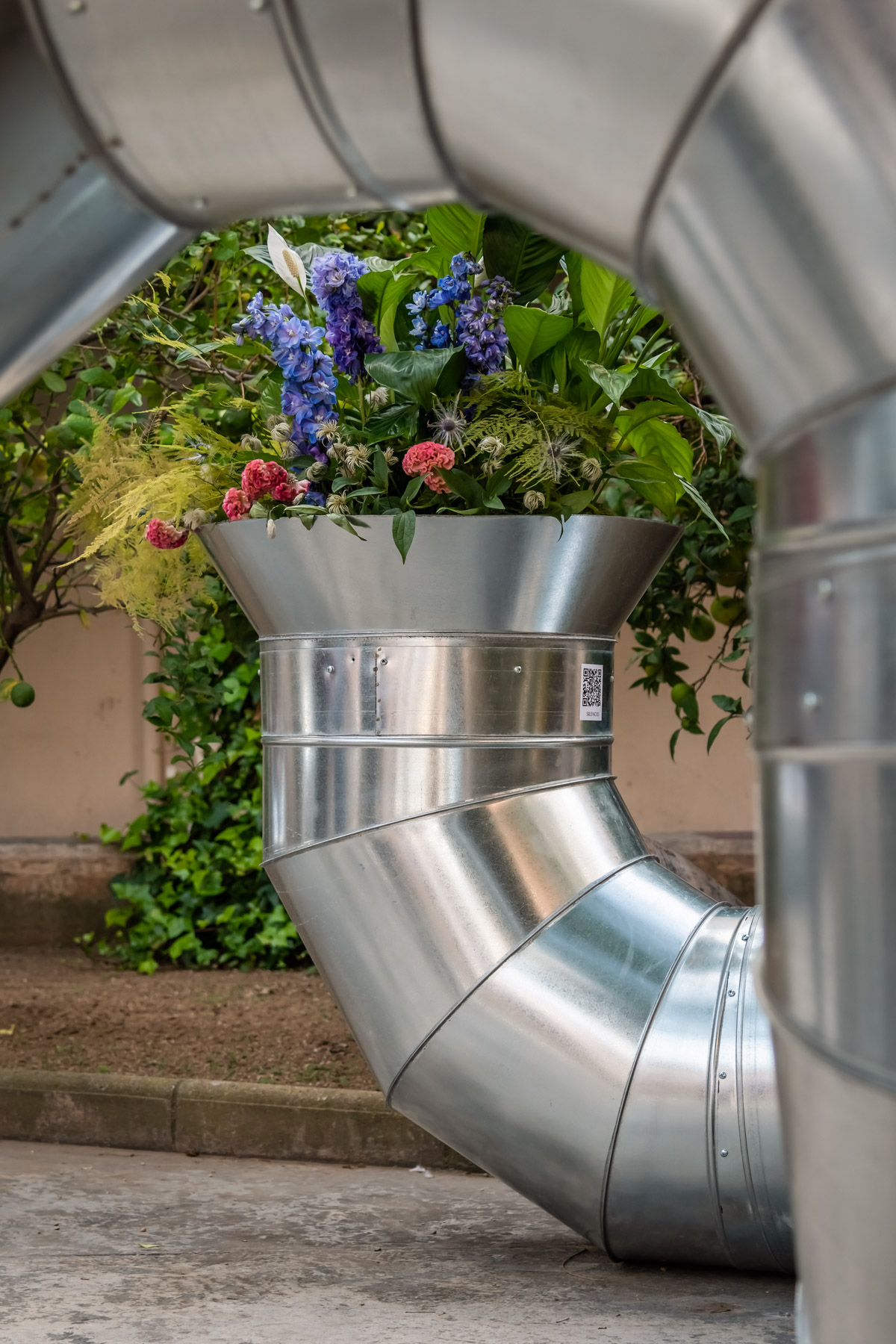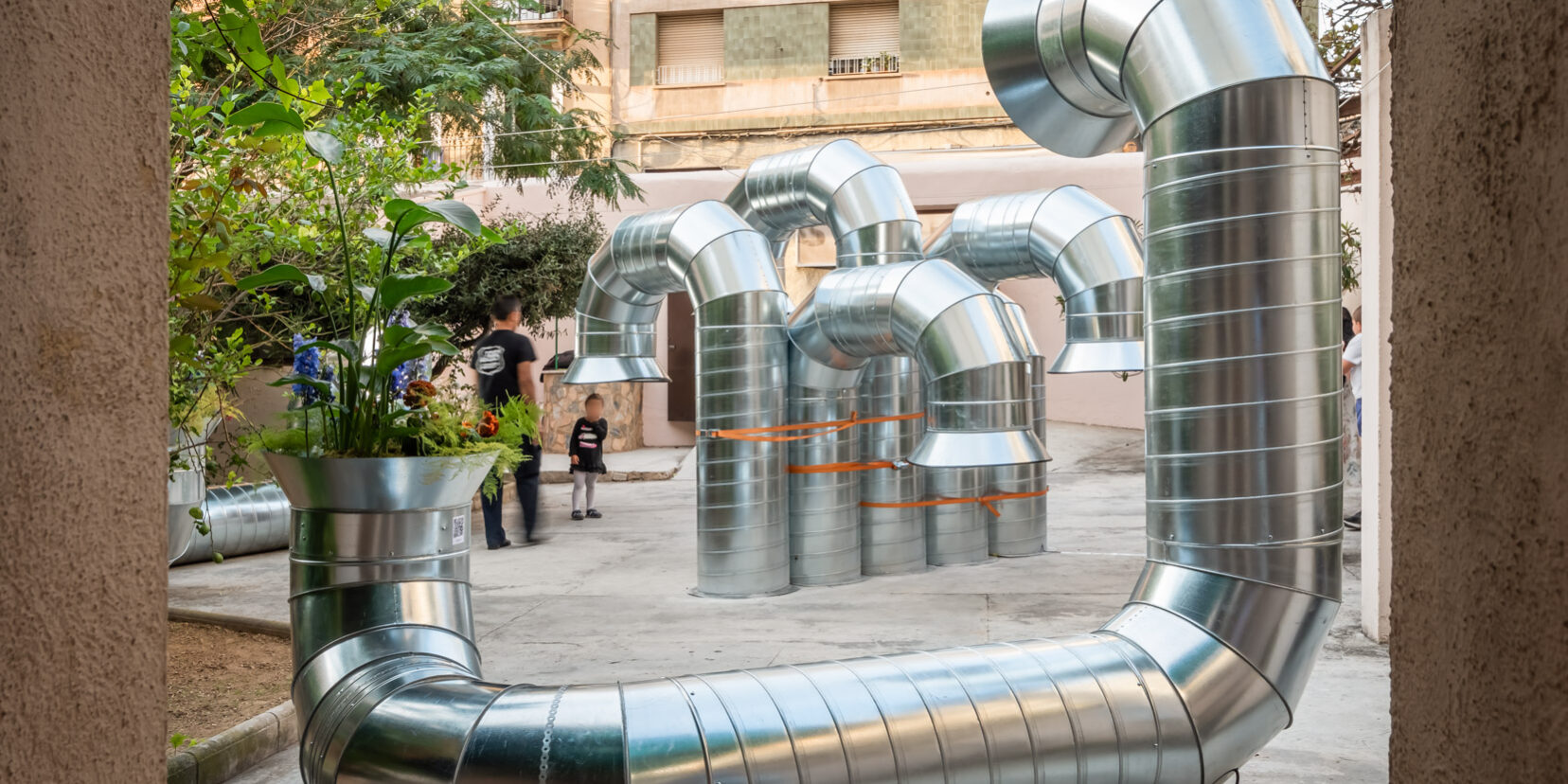 Inspirada por el concepto de intensidad, esta obra es un oasis de calma en medio del bullicio del festival. Los módulos de conductos de ventilación, dispuestos como arcos acogedores, se erigen como santuarios personales donde cada visitante puede sumergirse en un silencio profundo, lejos de la vorágine exterior. En estos refugios, se crea un espacio de reflexión donde el susurro del silencio se convierte en un eco de la propia mente, permitiendo una pausa contemplativa en el frenesí del ritmo actual. Esta experiencia recuerda la serenidad evocada por el concepto japonés de ma, el cual describe la pausa significativa y el espacio entre los elementos, que otorgan sentido y profundidad a la totalidad.