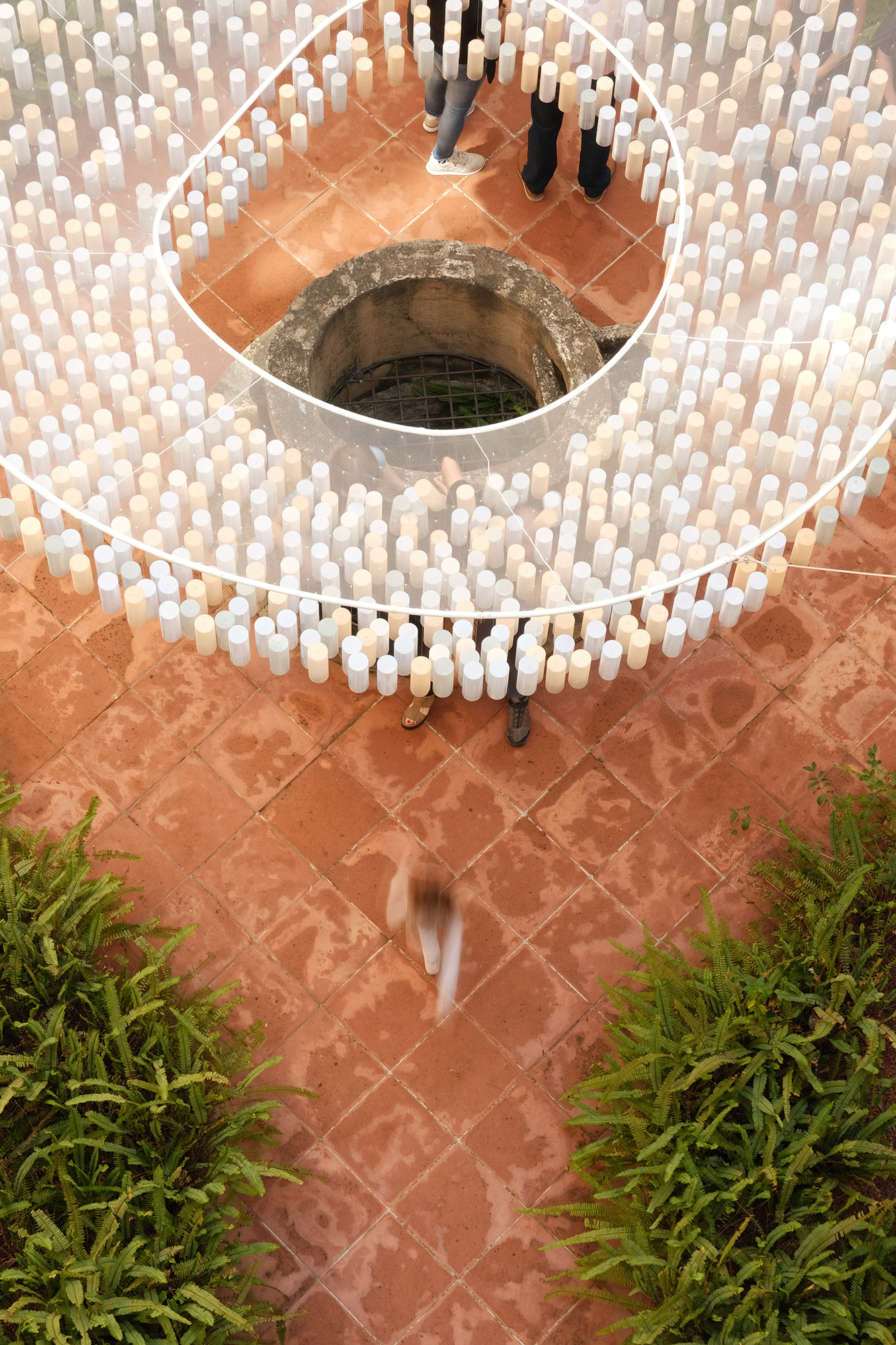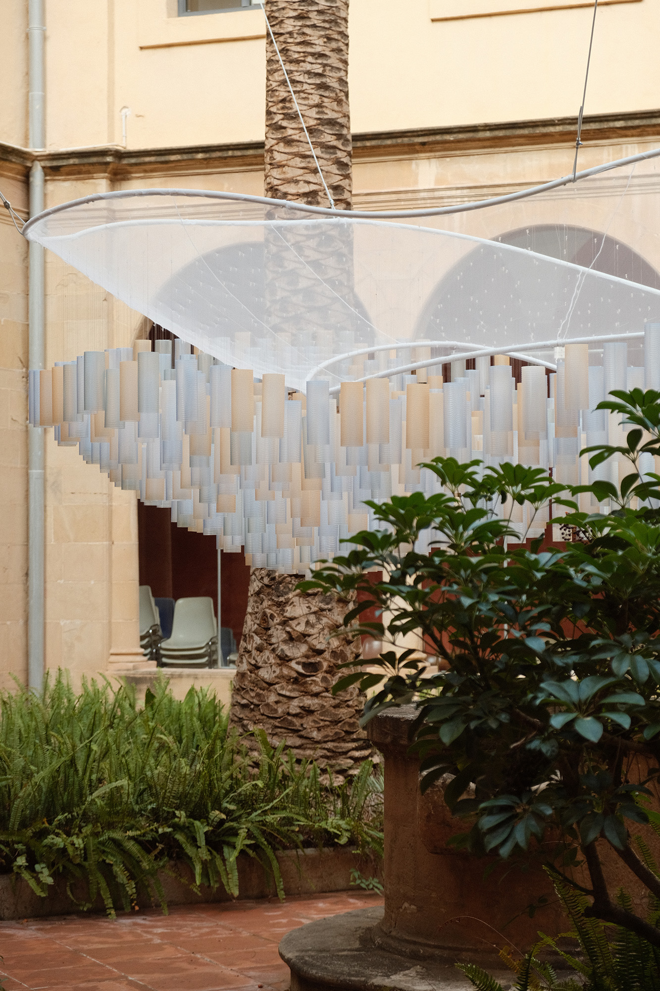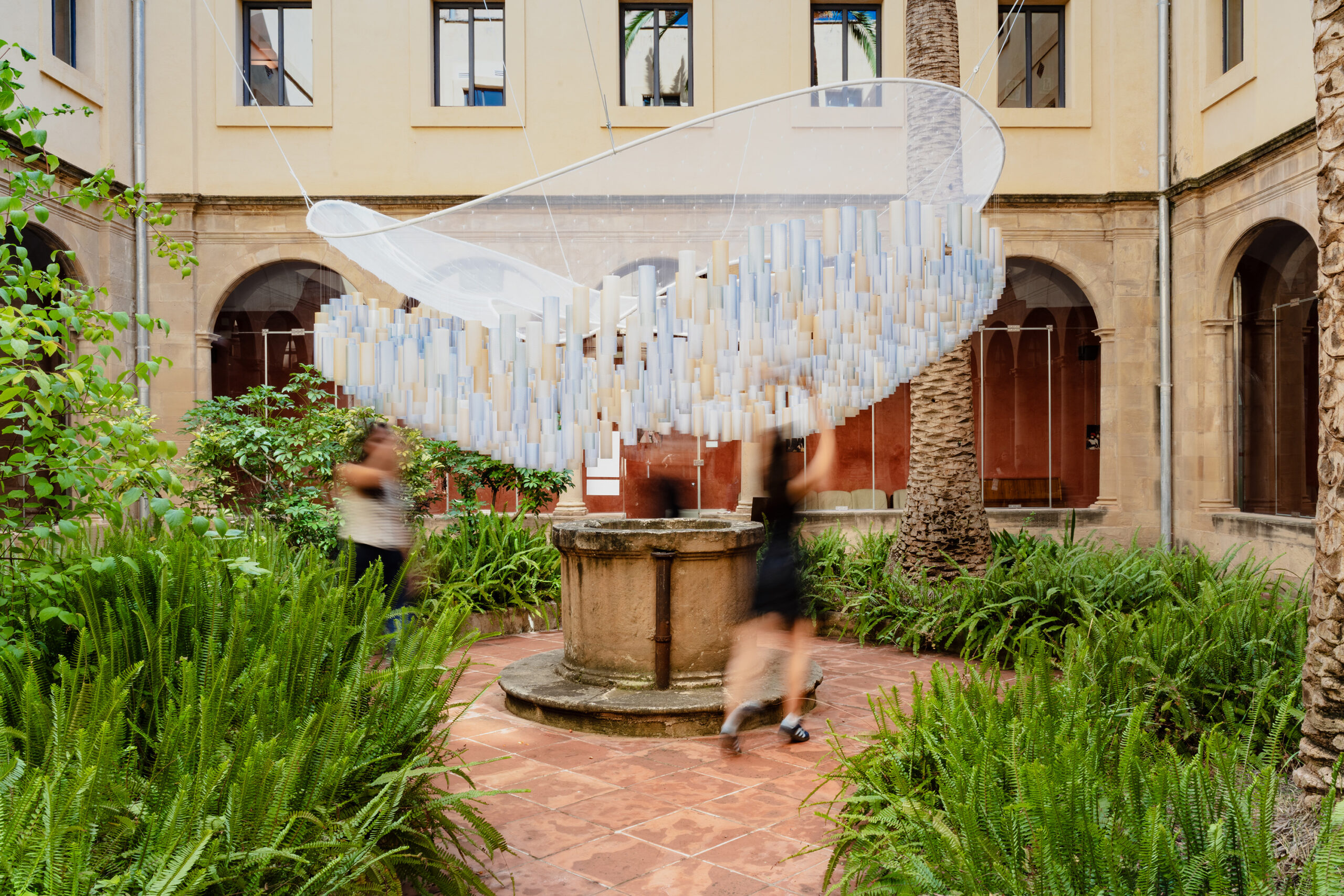 Rhubarb reinterpreta el patio como un escenario para sueños colectivos. Inspirada en la misión del festival de revelar el patrimonio oculto a través del arte efímero, esta intervención combina arquitectura, sonido y luz en una experiencia inmersiva que celebra el papel activo del público. Como los sueños, la instalación se activa a través de la interacción: el movimiento desencadena una sinfonía de sonidos y luces, transformando a los espectadores en participantes. A medida que la luz atraviesa el patio, las sombras cambiantes evocan la belleza efímera de los sueños, invitando a todos a entrar, interactuar e imaginar.