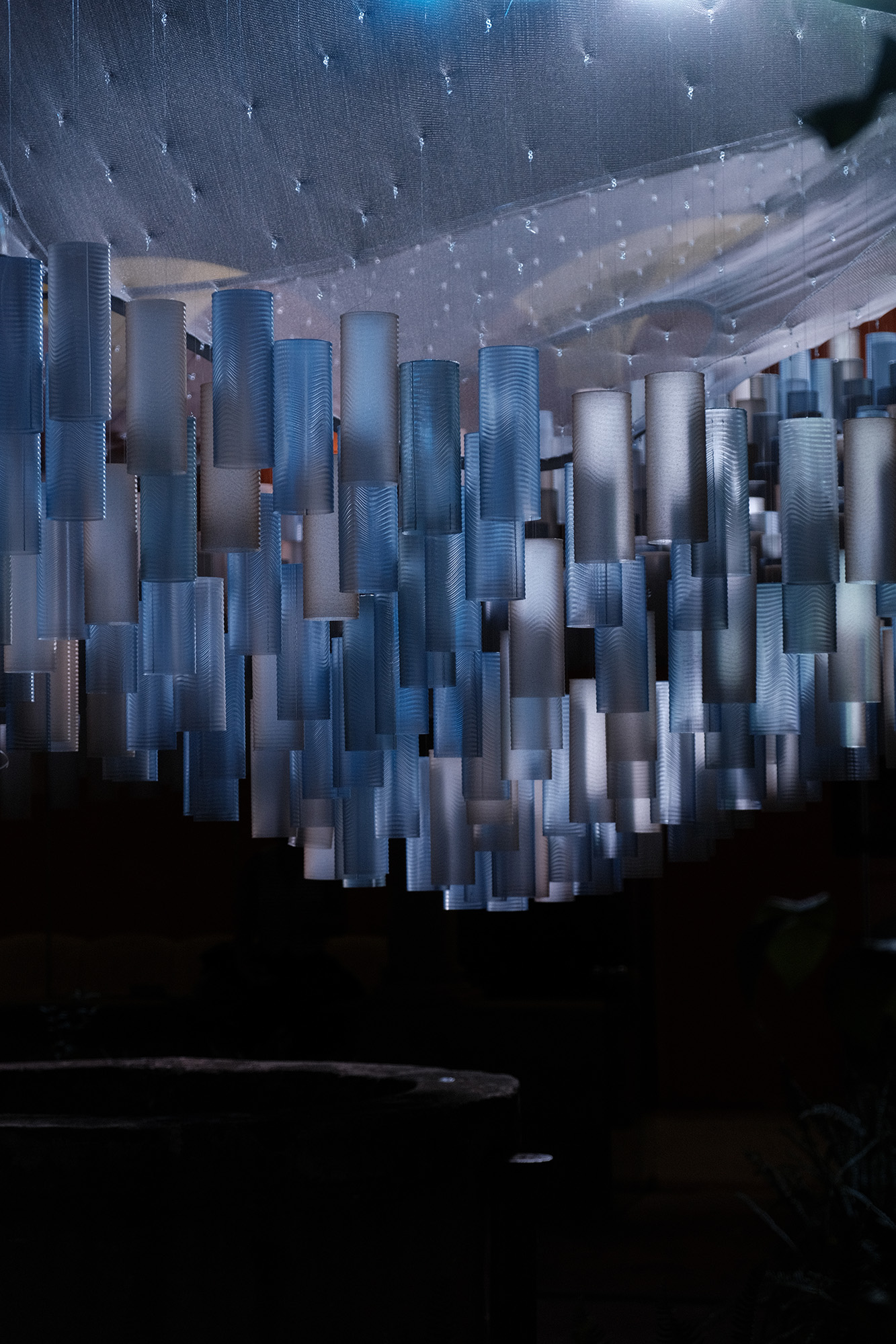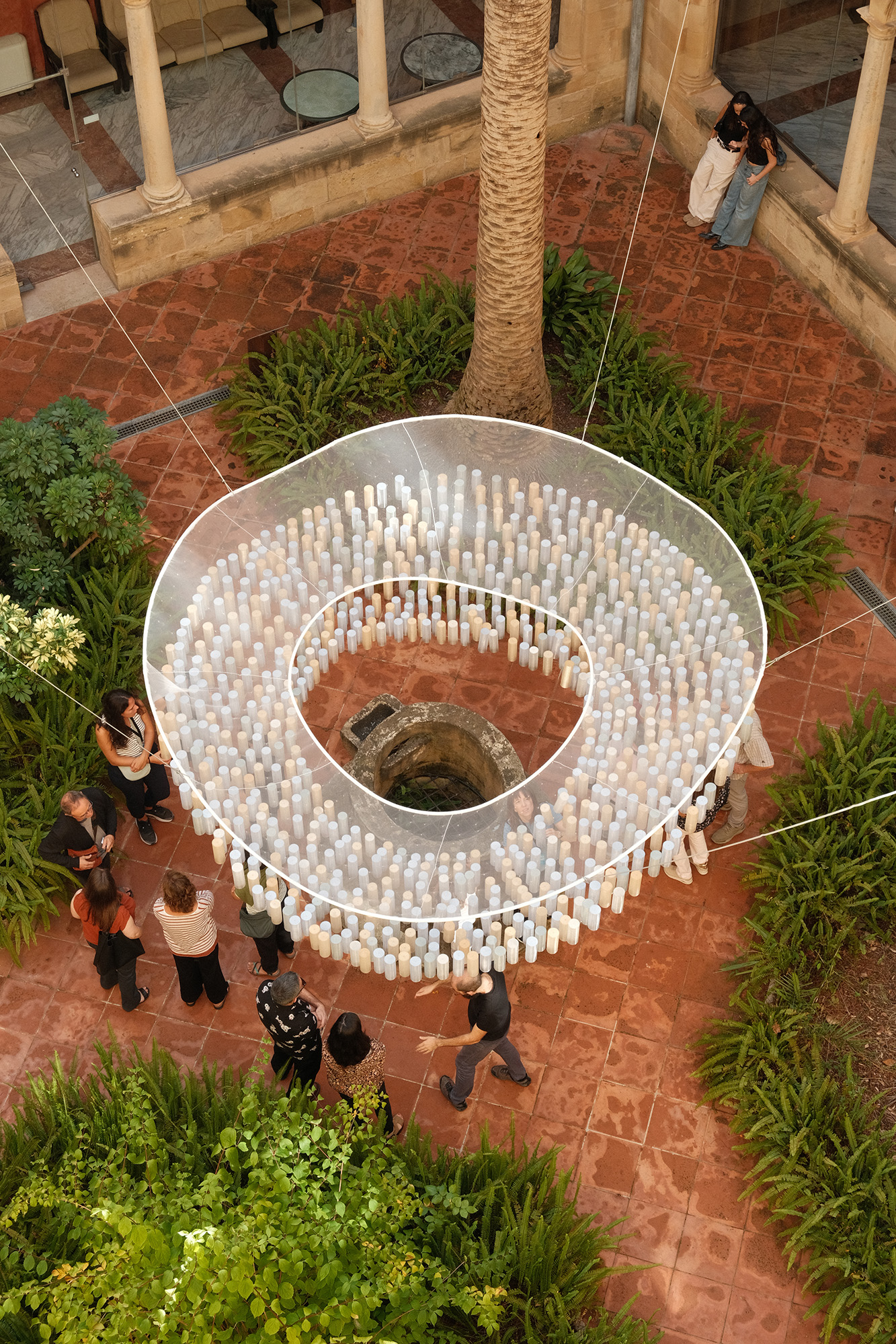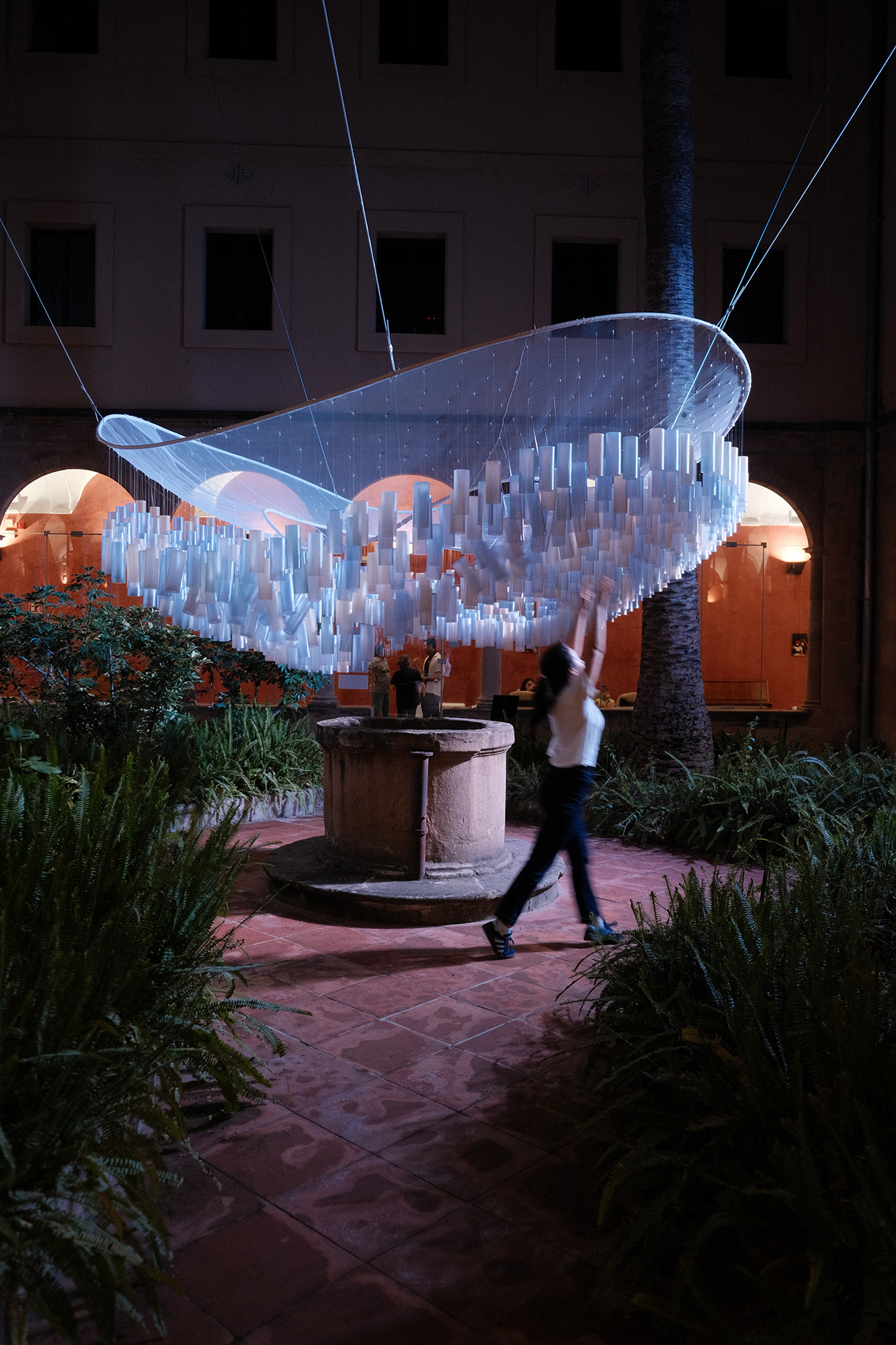 Rhubarb reinterpreta el patio como un escenario para sueños colectivos. Inspirada en la misión del festival de revelar el patrimonio oculto a través del arte efímero, esta intervención combina arquitectura, sonido y luz en una experiencia inmersiva que celebra el papel activo del público. Como los sueños, la instalación se activa a través de la interacción: el movimiento desencadena una sinfonía de sonidos y luces, transformando a los espectadores en participantes. A medida que la luz atraviesa el patio, las sombras cambiantes evocan la belleza efímera de los sueños, invitando a todos a entrar, interactuar e imaginar.