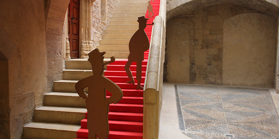 Aprovechando la oportunidad de encontrarnos en el patio del Palau Despuig (que acoge la Escuela y Conservatorio de Música de Tortosa) hemos escogido el término musical «crescendo», con la voluntad de expresar que la escalinata de piedra es mucho más larga de lo que parece.