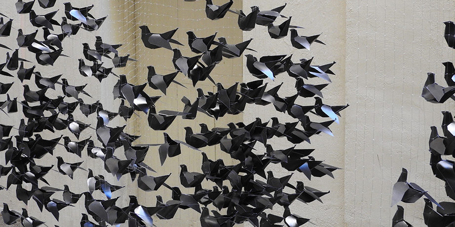 En esta instalación se ha querido hacer evidente este espectáculo. Además, ha servido de herramienta para explicar, de forma didáctica en las aulas, qué es «la perspectiva». ¡Pasear y observar el vuelo de los estorninos y descubrir cómo su vuelo crea formas sorprendentes!